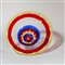 Una grande alzata 'Astrale' con decoro di fasce lattimo giallo e rosso e stella centrale.