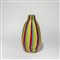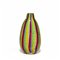 Un vaso ovale a canne policrome accostate e foglia argento.