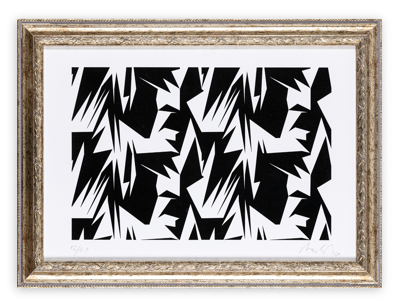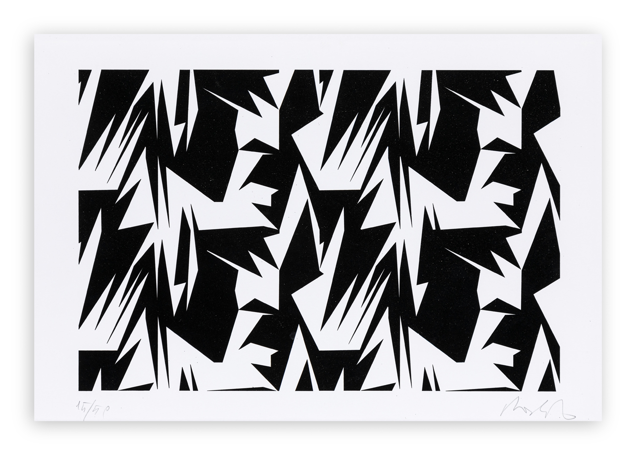 Firma e numerazione (Esemplare 15/50) a matita al fronte