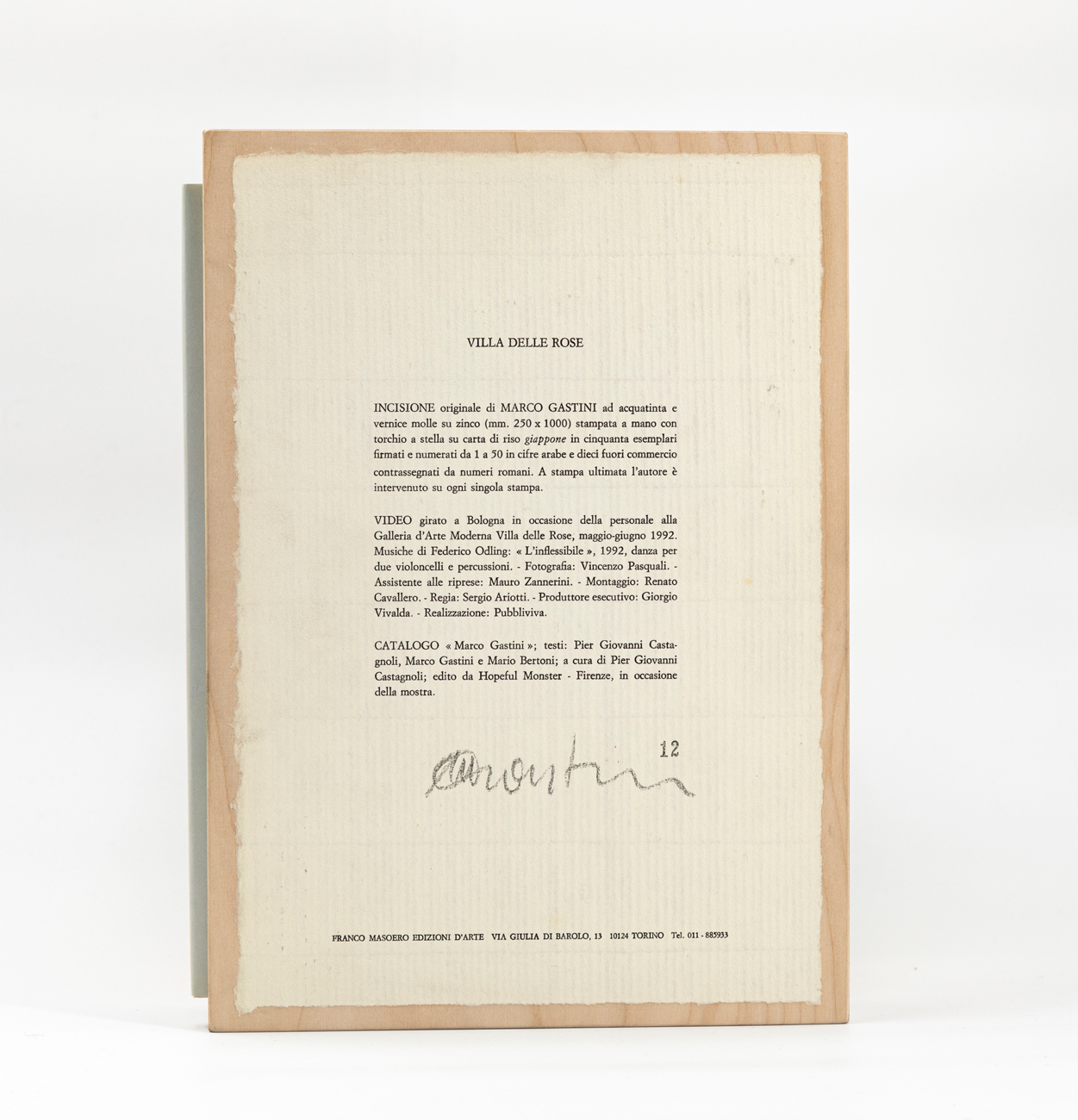 Firma di Marco Gastini a matita e numerazione (Esemplare 12) sulla controcopertina