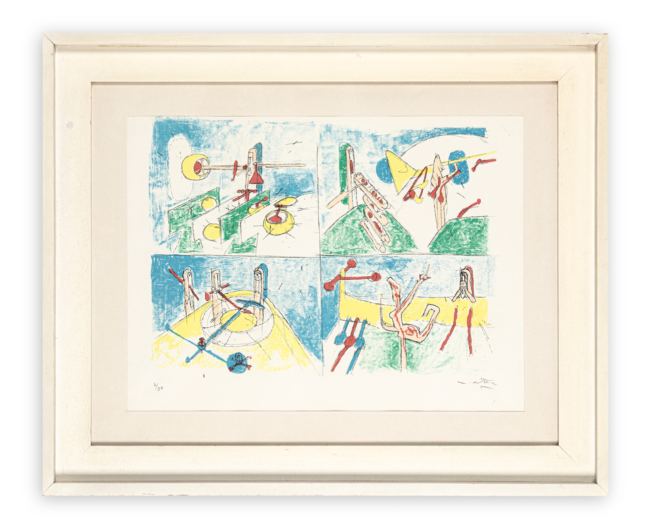 La presente litografia precede la realizzazione dell'affiche per la personale dell'Artista tenutasi al Museo Civico di Bologna nel 1963