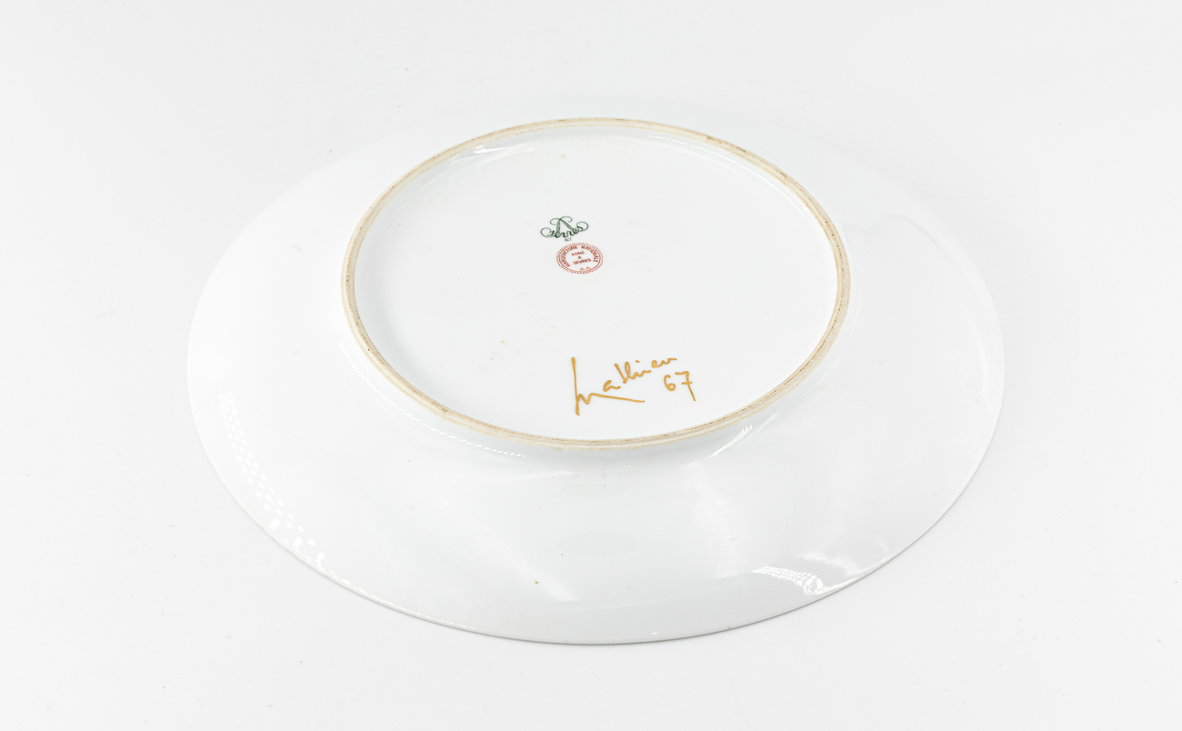 Firma di Georges Mathieu, datazione (1967) e timbro della Manifattura di Sèvres serigrafati al retro
