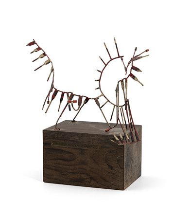 Scultura in ferro dipinto su base in legno - esemplare unico