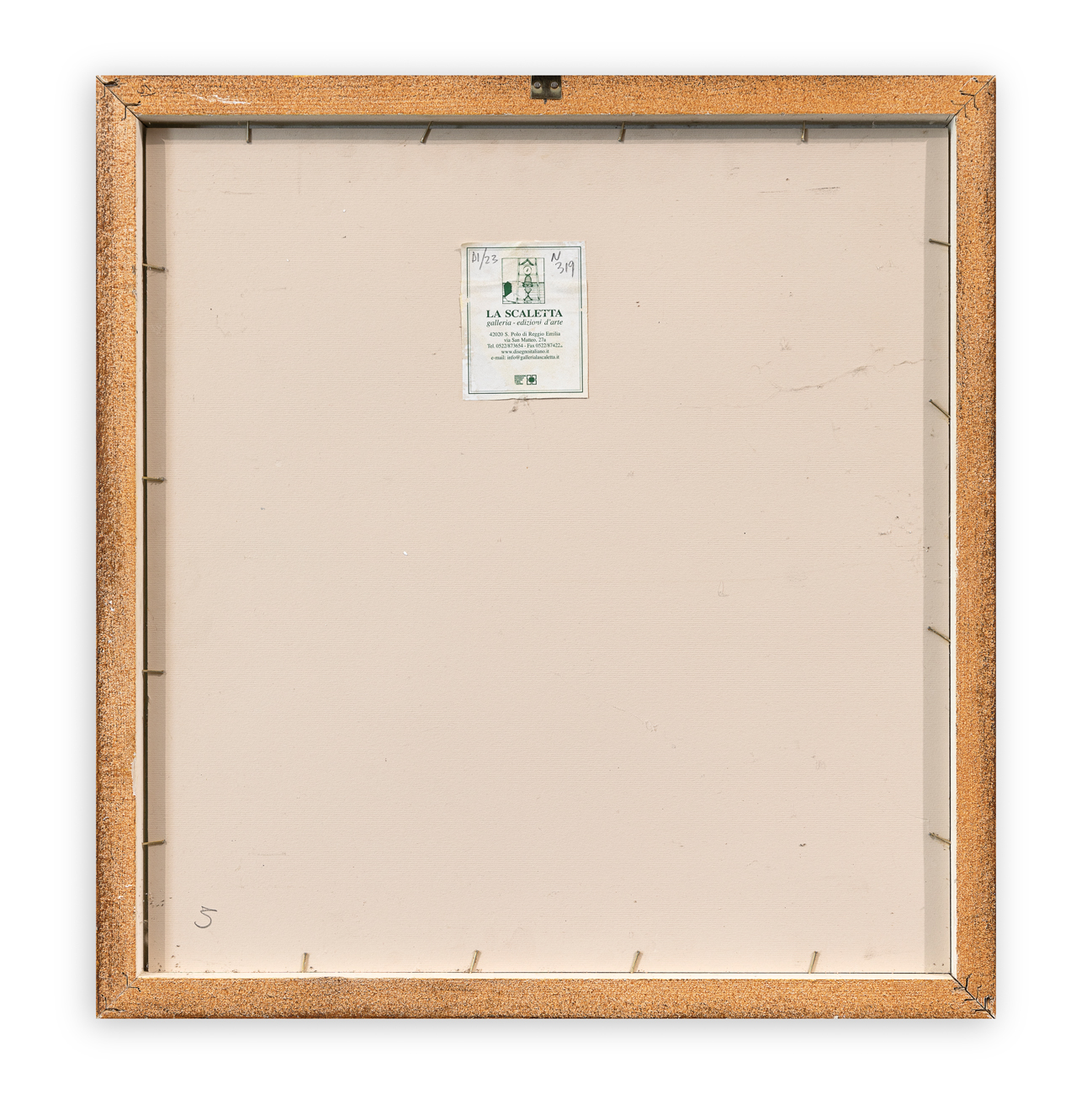 Etichetta della Galleria La Scaletta (RE) al retro del cartone protettivo