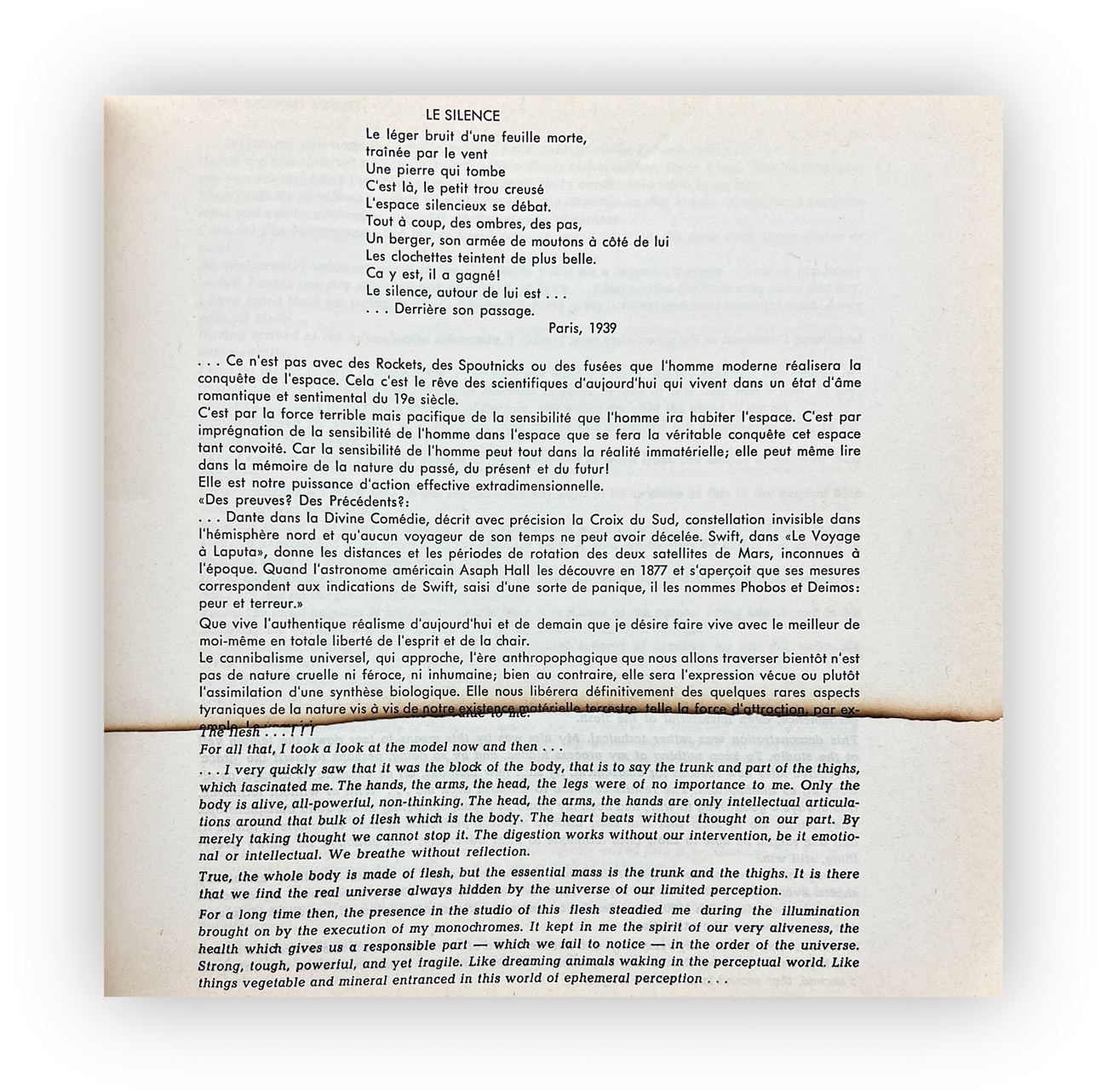 Pieghevole illustrato edito in occasione dell'esposizione tenutasi presso Galleria Schwarz, Milano, 1964