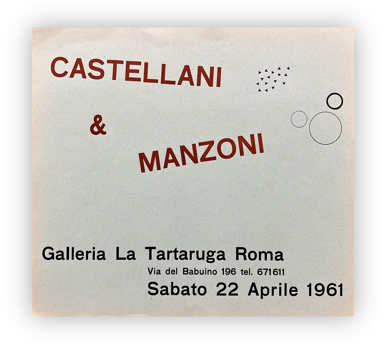 Locandina dell'esposizione 'Castellani & Manzoni' tenutasi presso Galleria La Tartaruga, Roma, Aprile 1962