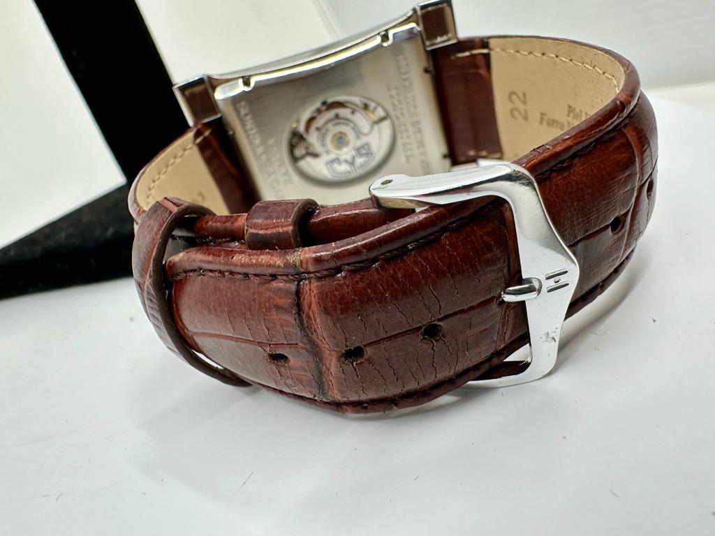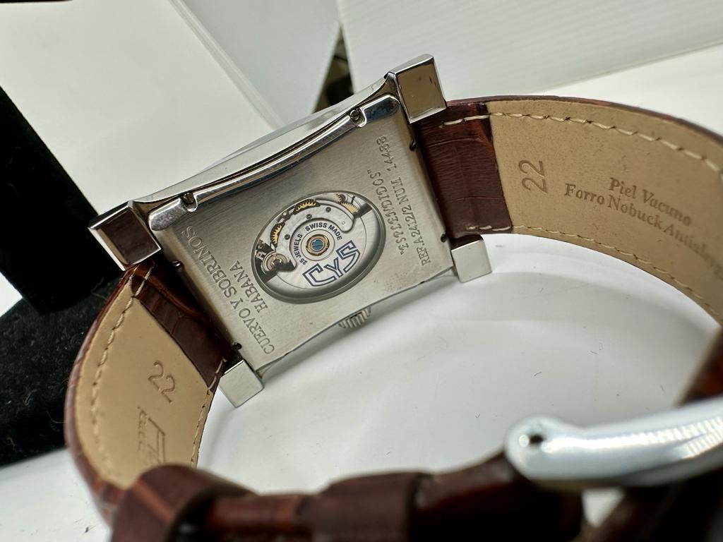 Marca Cuervo y Sobrinos Modello (Orologio) Espléndidos Numero di referenza 2412 Codice del commerciante 2412 Carica Automatico Materiale della cassa Acciaio no box, no documenti Materiale della cassa Acciaio Diametro 35 mm Impermeabile 3 ATM Materiale lunetta Acciaio Vetro zaffiro Chiusura ad ardiglione Materiale chiusura Acciaio Funzioni Data
