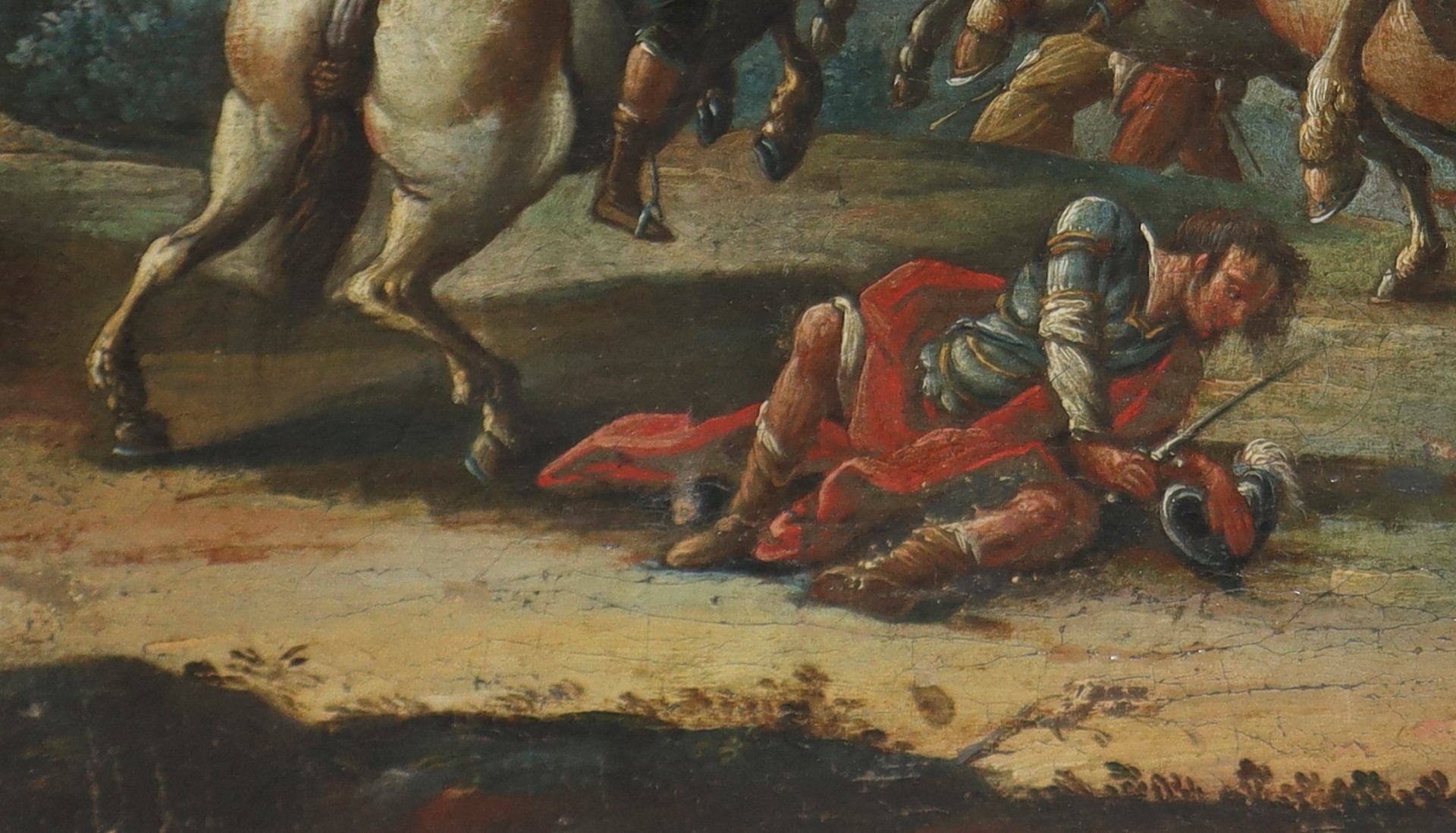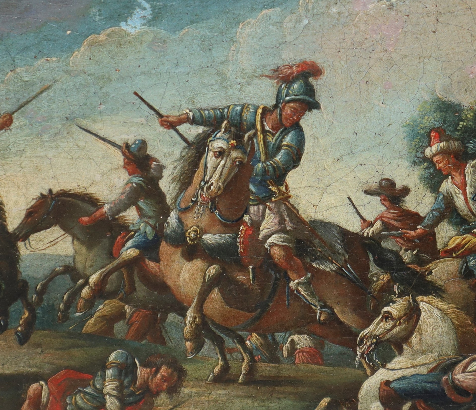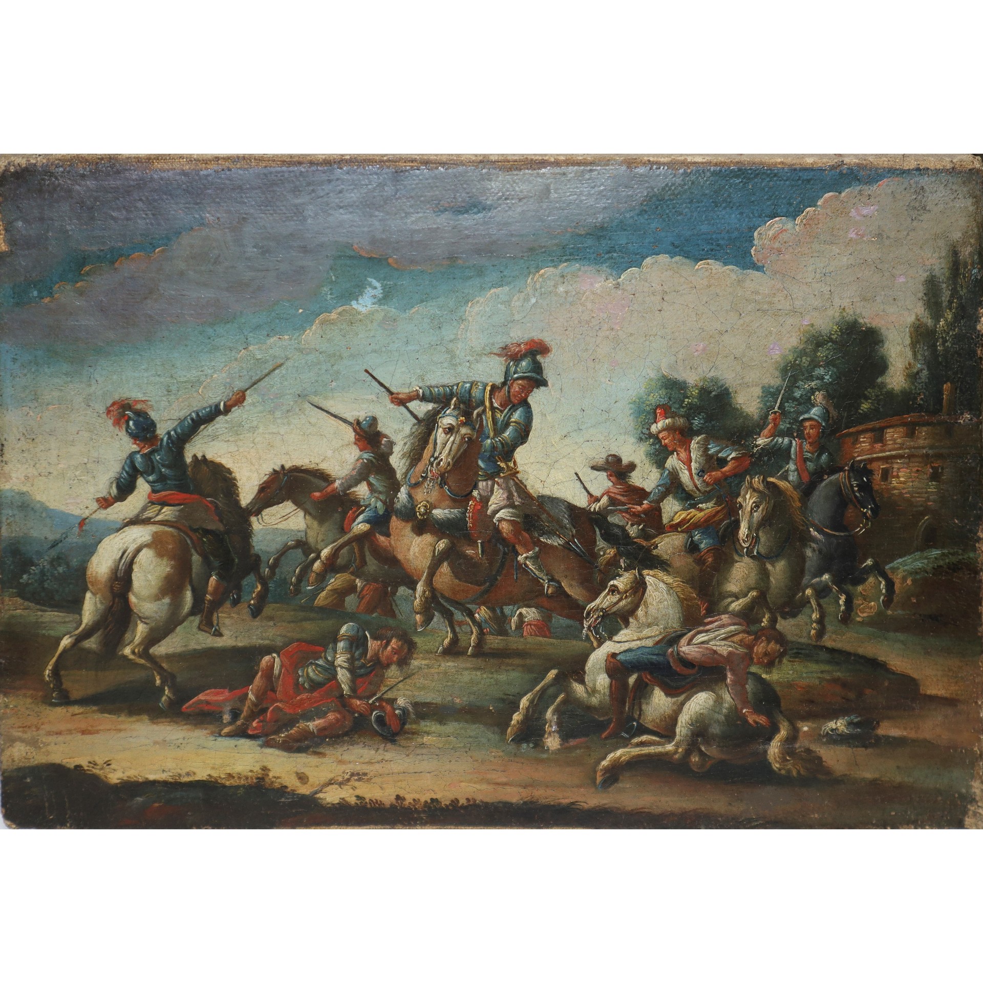 Francesco Graziani Ciccio Napoletano - Sfida fra cavalieri a cavallo, Second half of the 17° secolo H cm 22,5x31 Olio su tela
