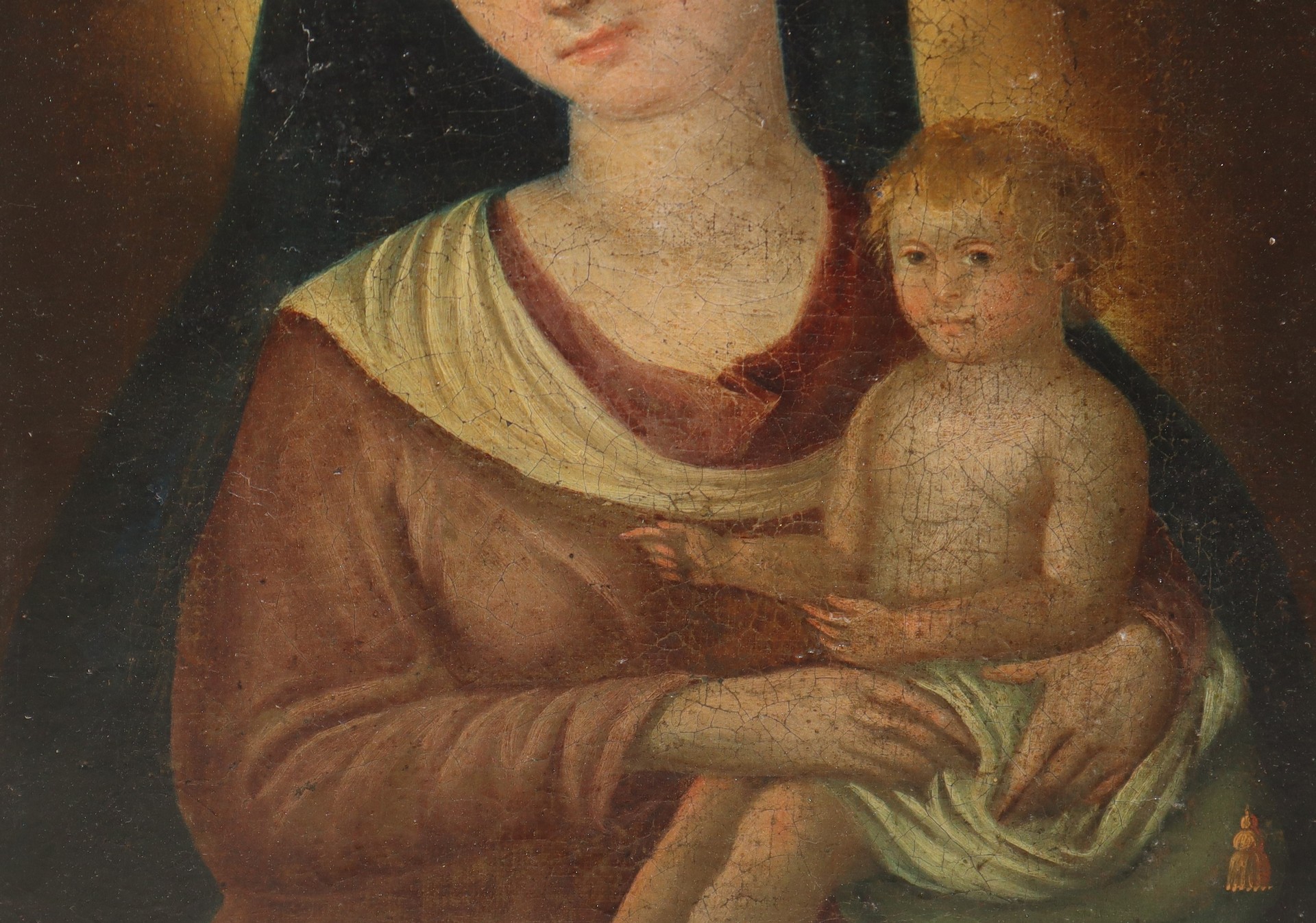 Madonna con bambino (Mater Divinae Gratiae), Anonymous painter of the 18th/19° secolo H cm 40x30 - in cornice H cm 49.5x39.5 Olio su tela