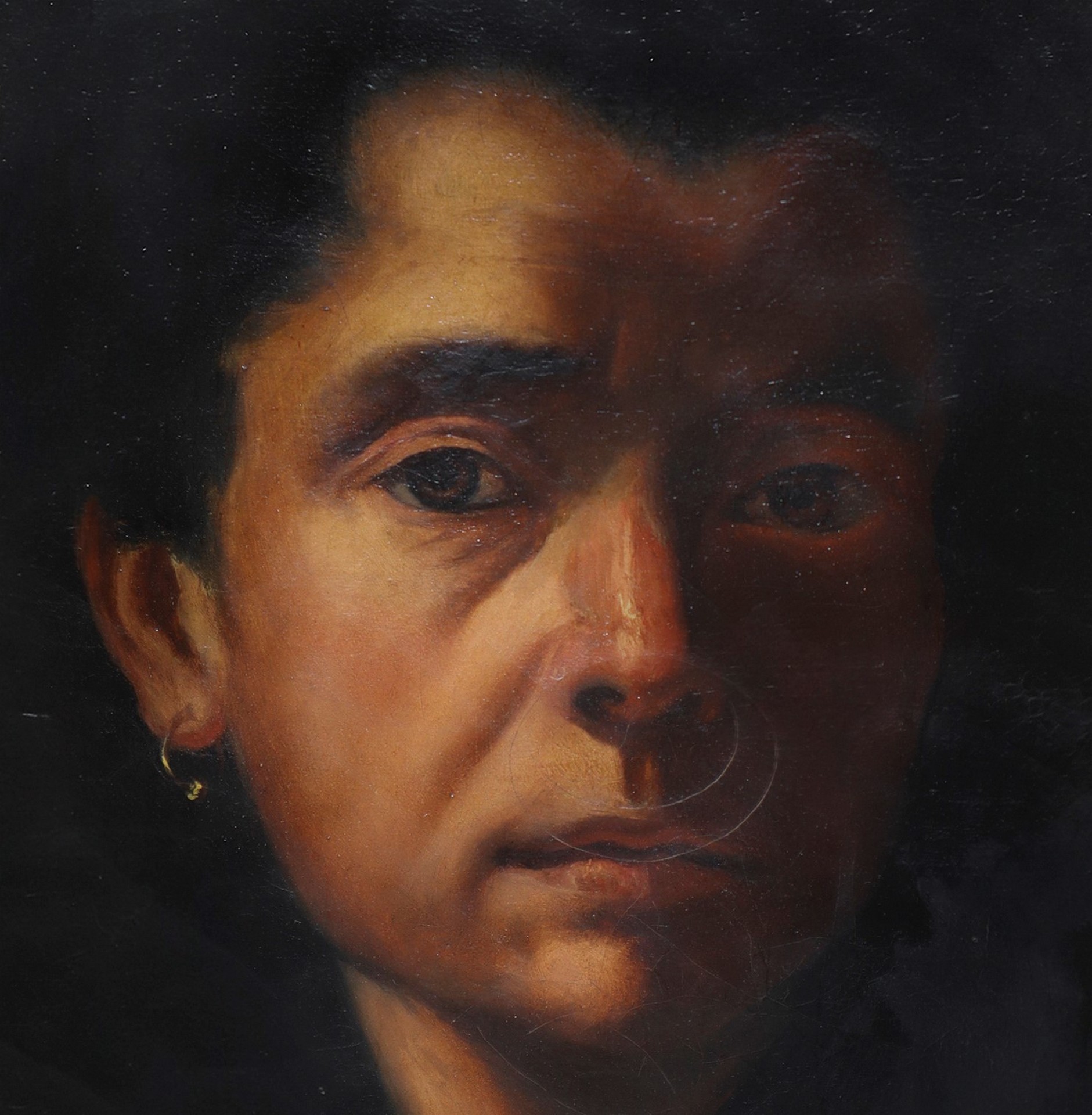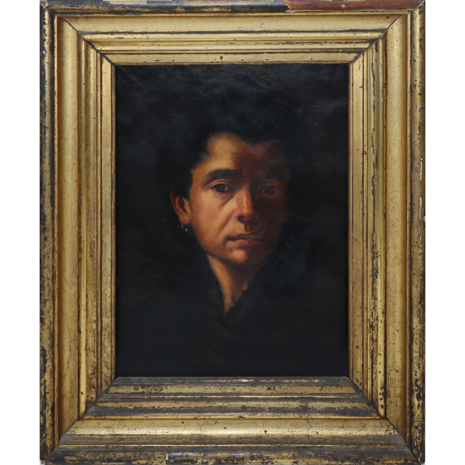 Ritratto di donna , nineteen° secolo H cm 46x34,5 - in cornice H cm 56x45 Olio su tela In cornice dorata.