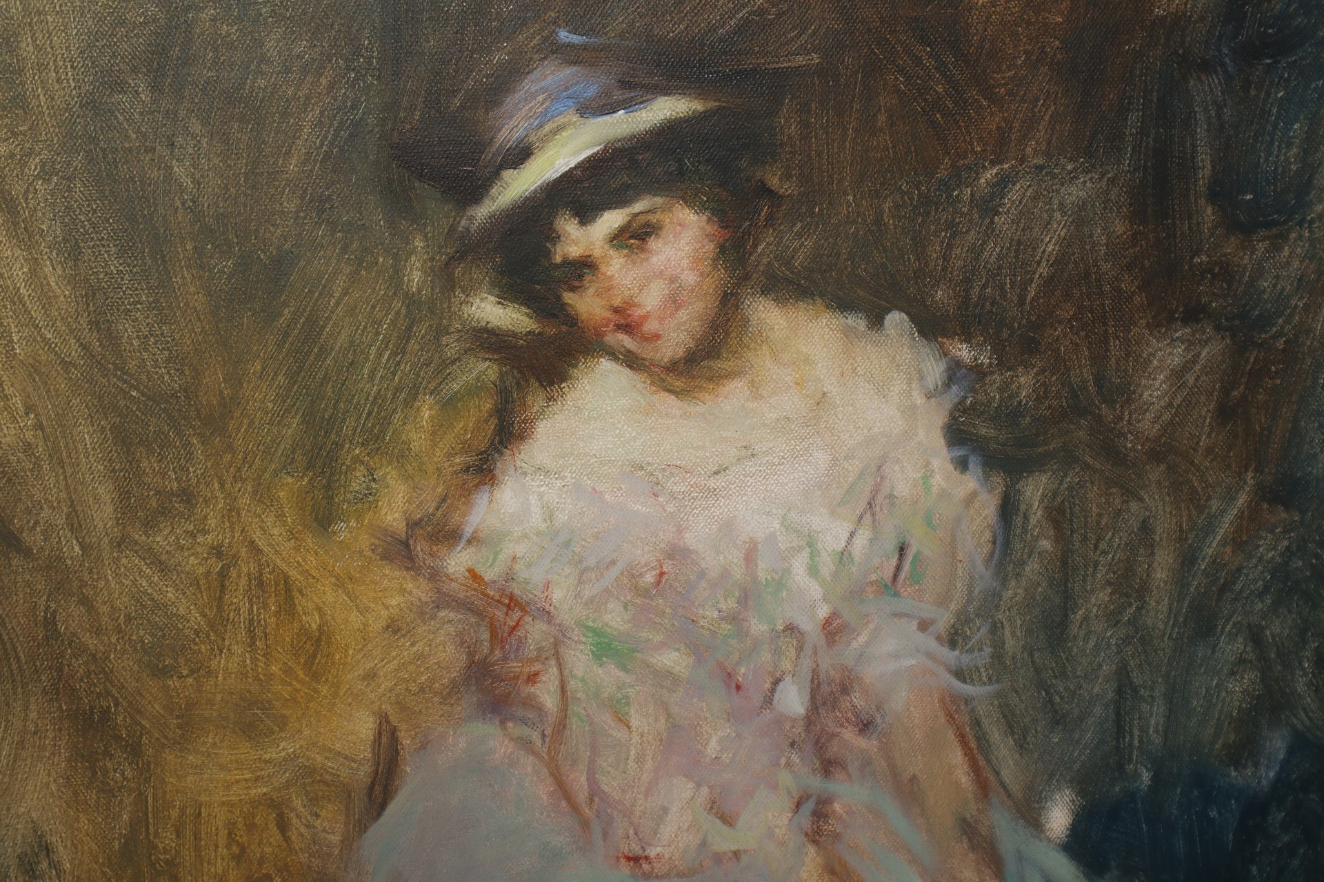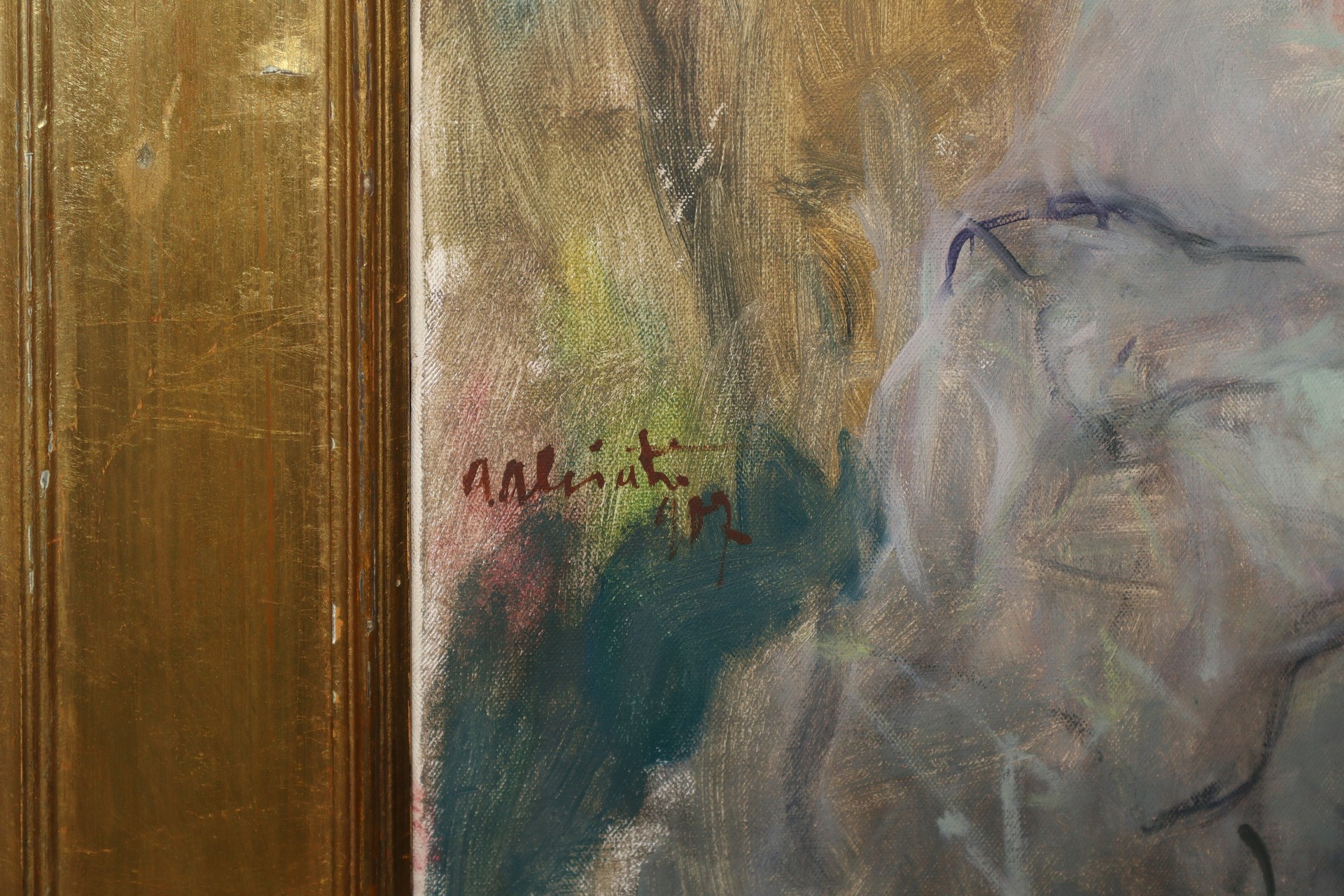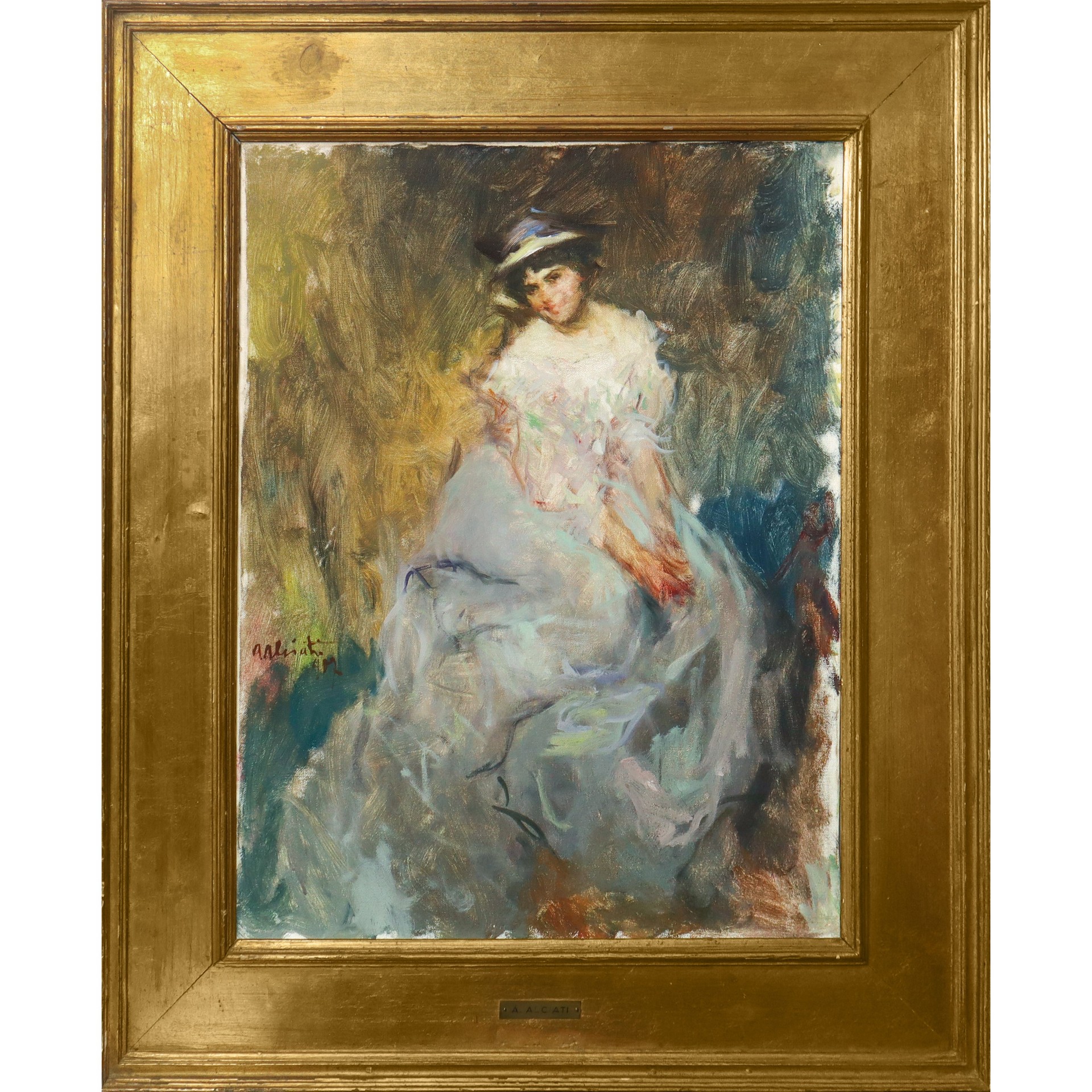 Antonio Ambrogio Alciati (Vercelli 05/09/1878-Milano 08/03/1929) - Ragazza seduta H cm 65x50 - in cornice H cm 87x72 Olio su tela Firmato sul lato sinistro. In cornice dorata.