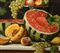 Michelangelo Meucci (1840-1909) - Natura morta di frutta con anguria rossa, Florence 1875