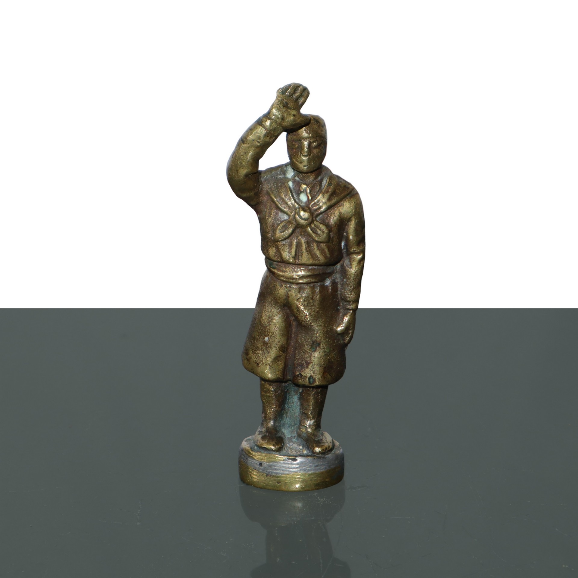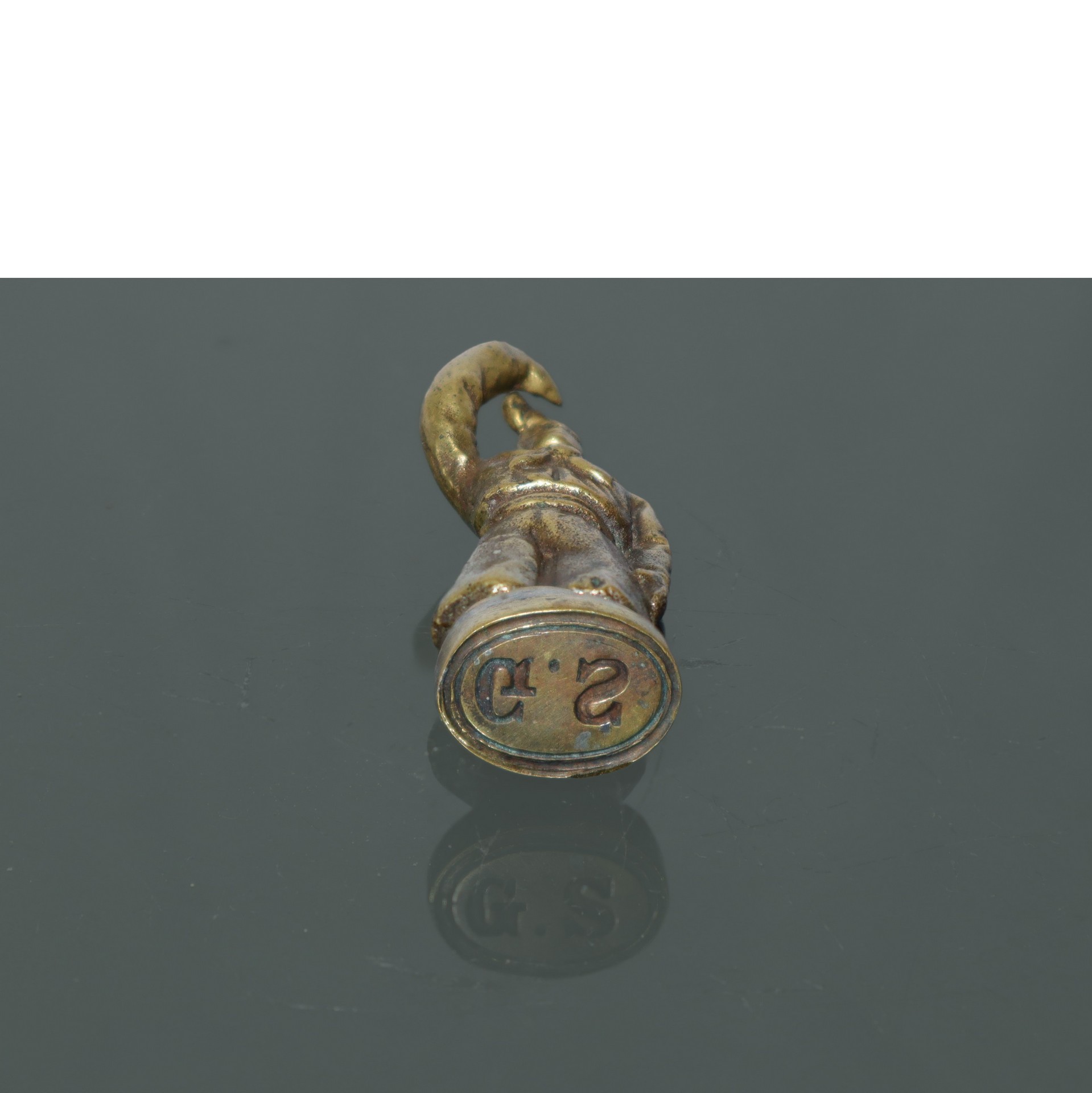 Sigillo con lettere GS in ottone raffigurante il saluto del giovane avanguardista