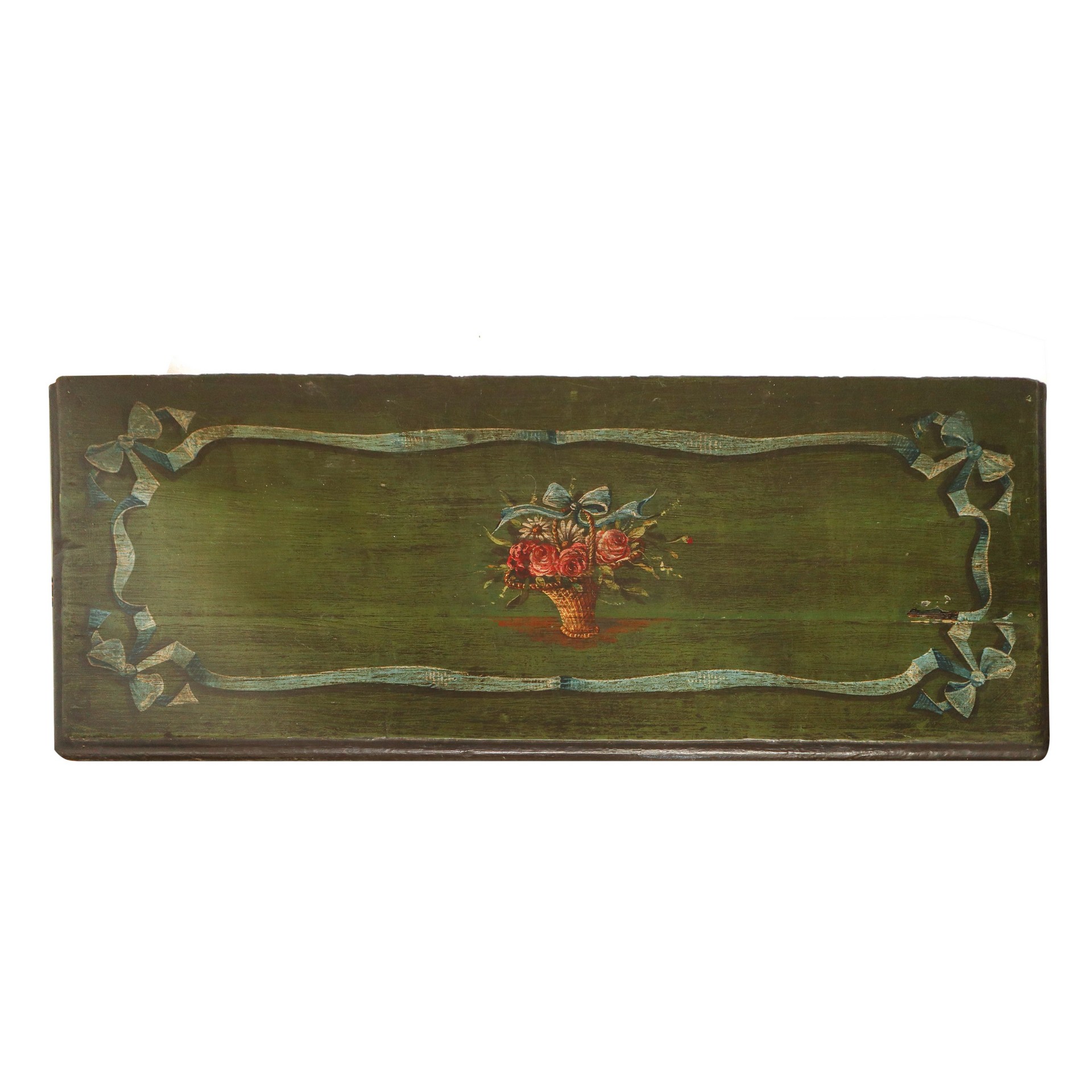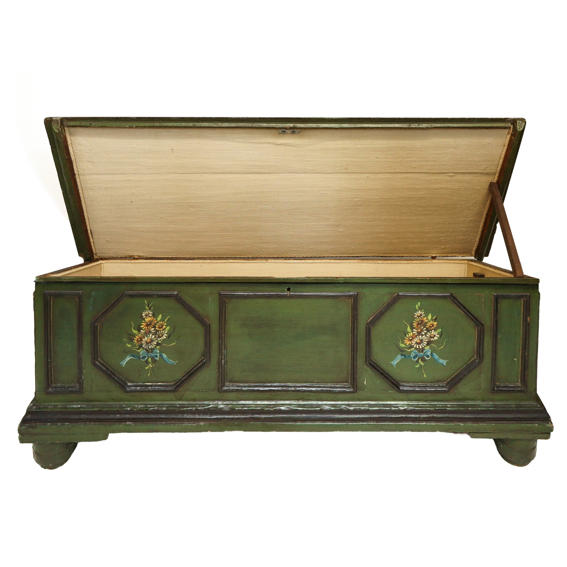 Cassapanca laccata e dipinta nei toni del verde, nineteen° secolo