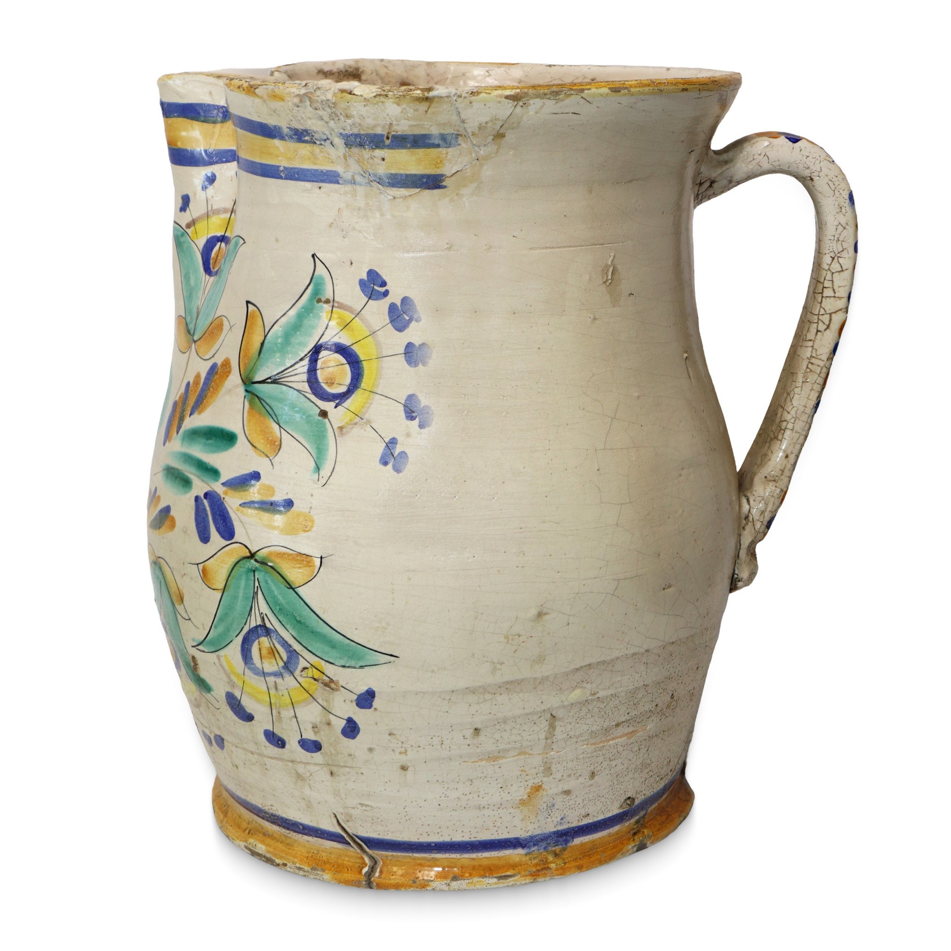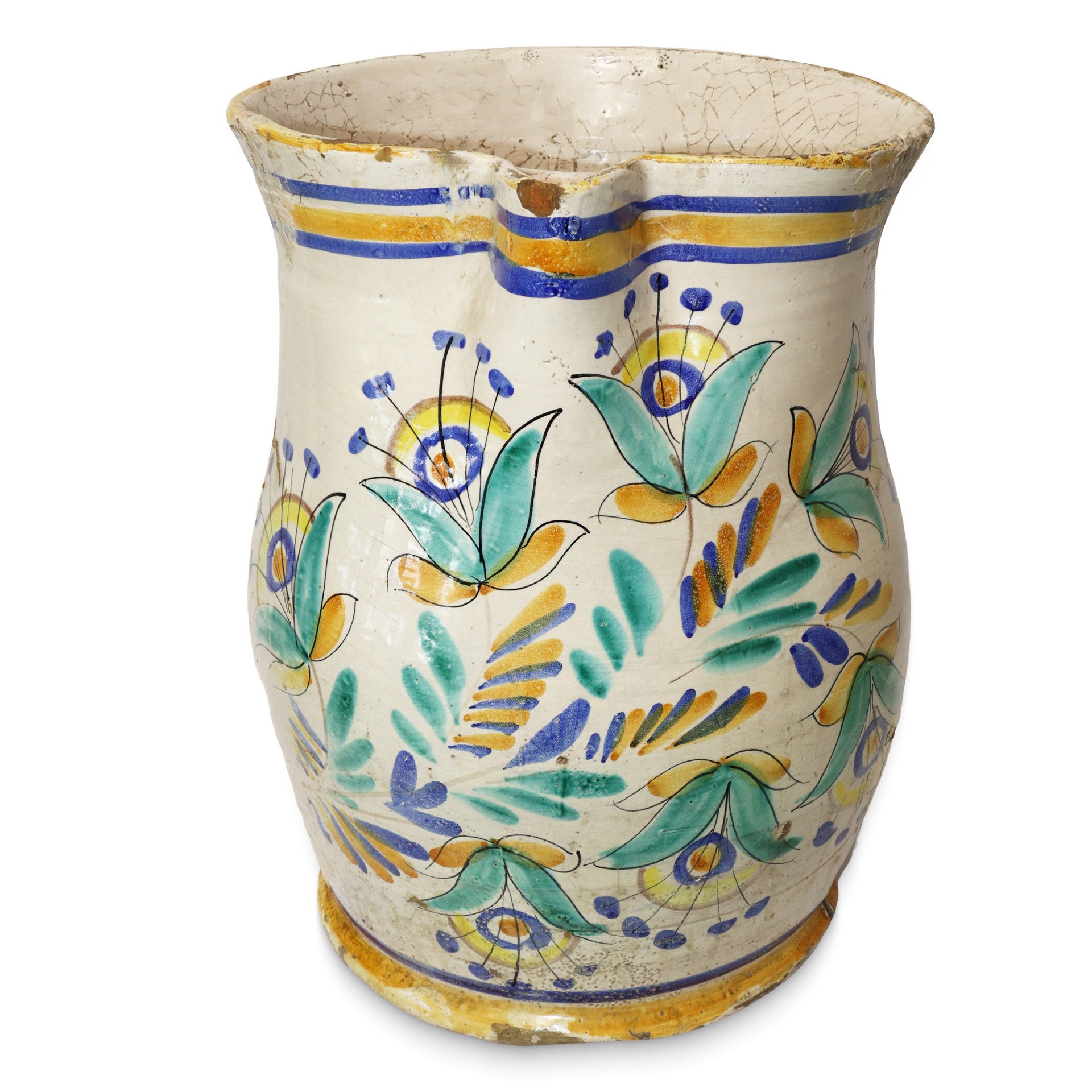 Grande cannata versatoio monoansata campana., nineteen° secolo H cm 40 Decorato a fiori. Decorato a fiori.