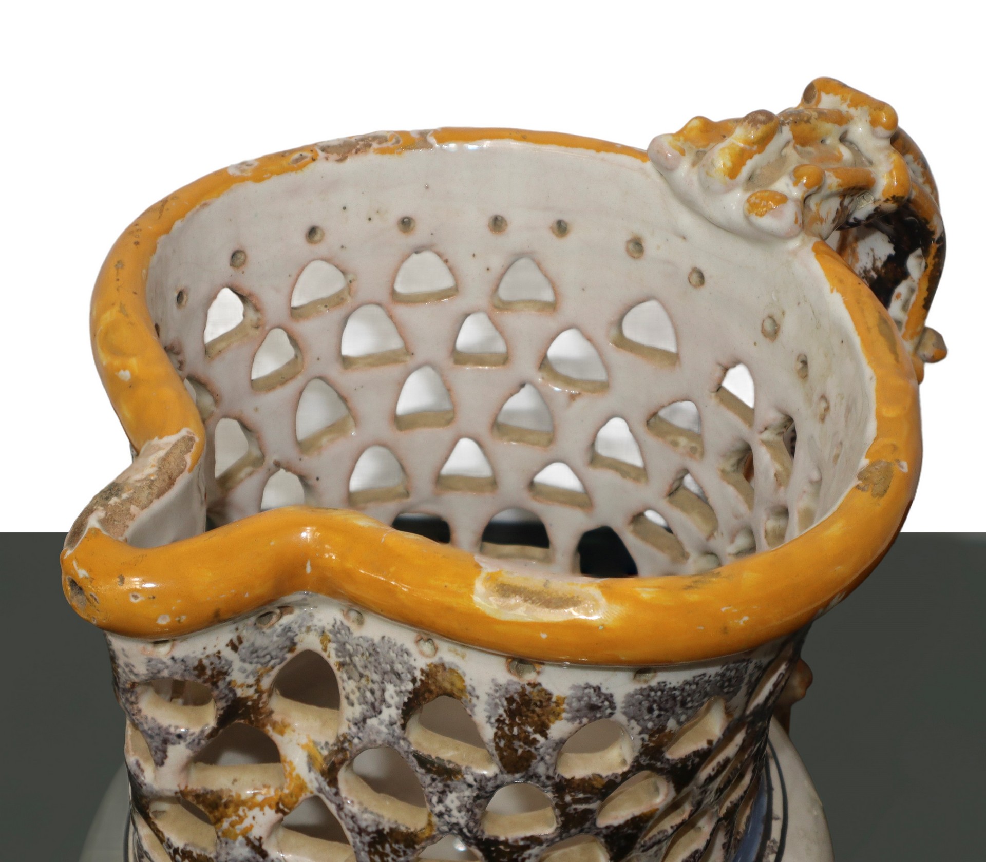 Versatoio traforato in maiolica policroma “bevi se puoi”, Laterza (Puglia), fine 18° secolo H cm 25
