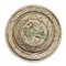 Piatto in maiolica policrama con raffigurazione di uccello al centro. , Central Italy, 14° secolo H cm 4 - diam. cm 26 Nei toni del marrone manganese e verde ramina a motivi geometrici.Nei toni del marrone manganese e verde ramina a motivi geometrici.