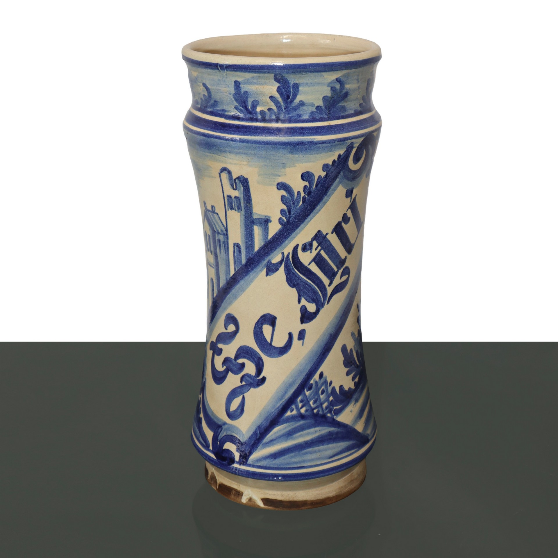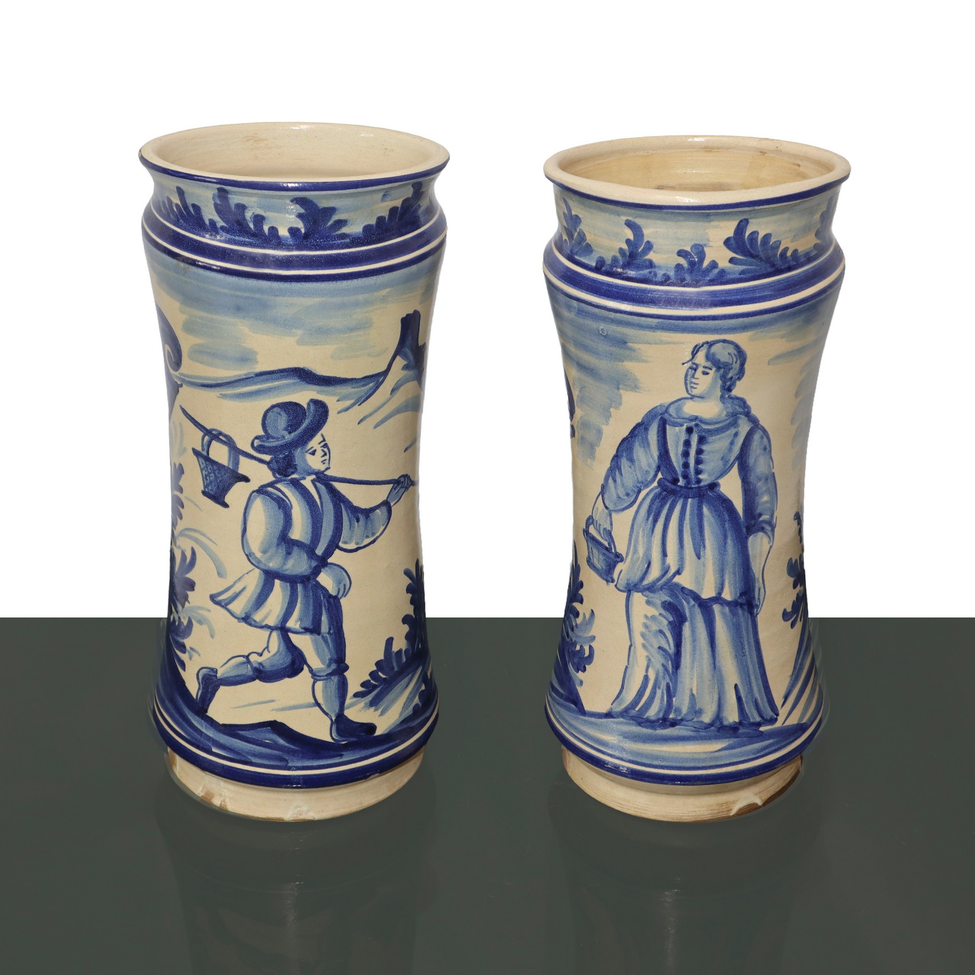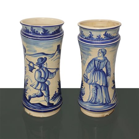 Coppia di albarelli da farmacia in maiolica dipinta,, Spain, primi 1900s