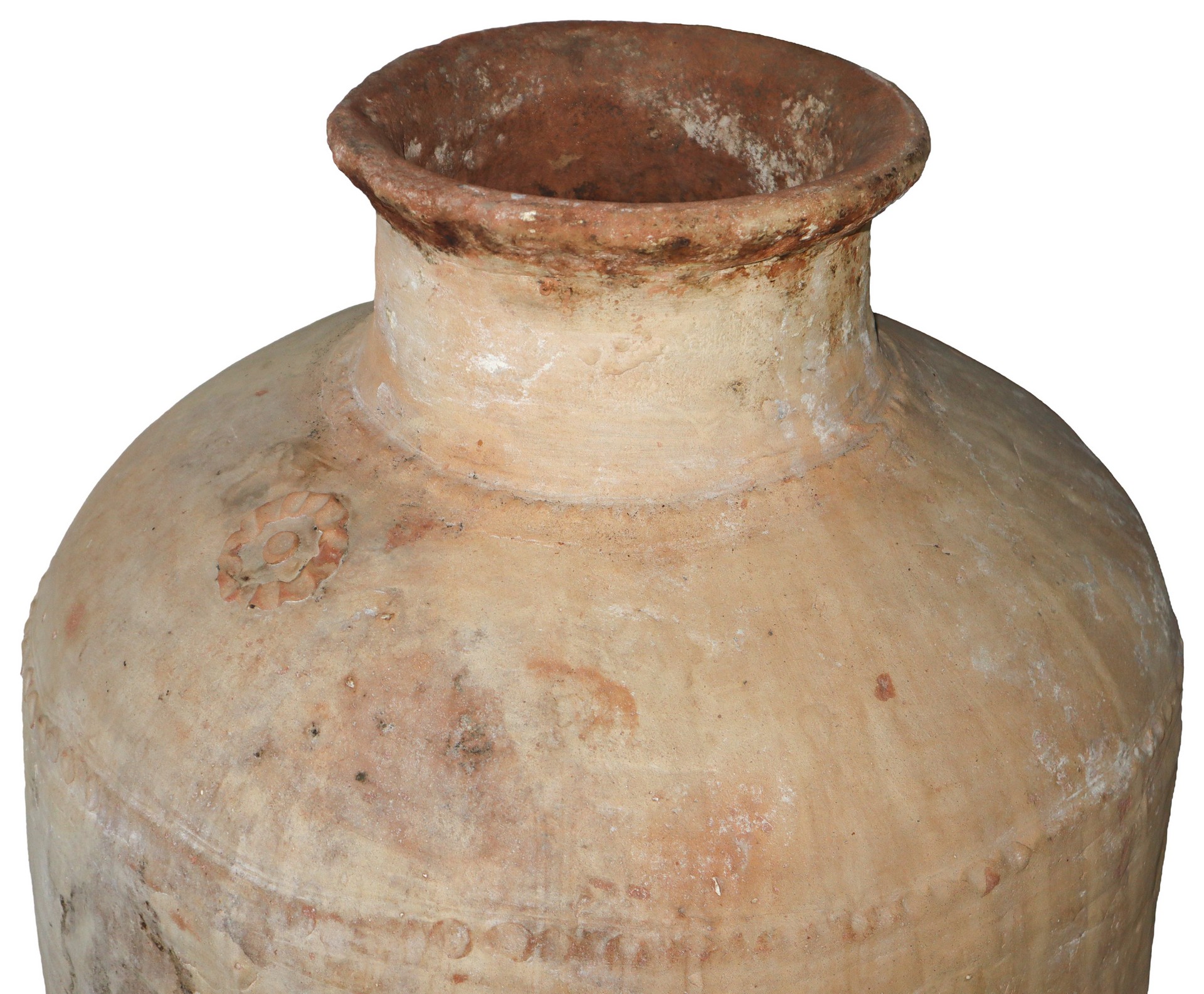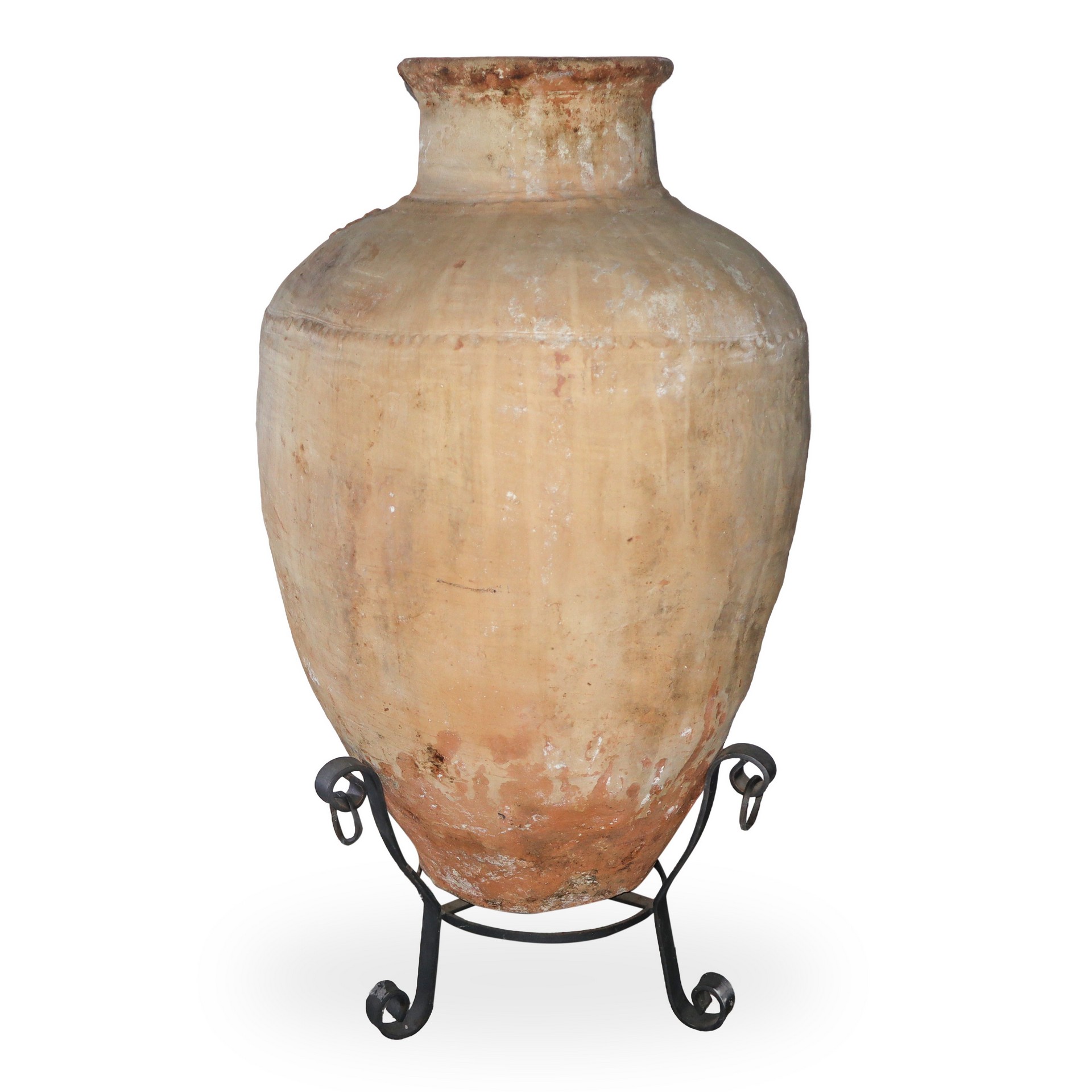Giara in cotto con collo smaltato e base in ferro H cm 90 - diam cm 185