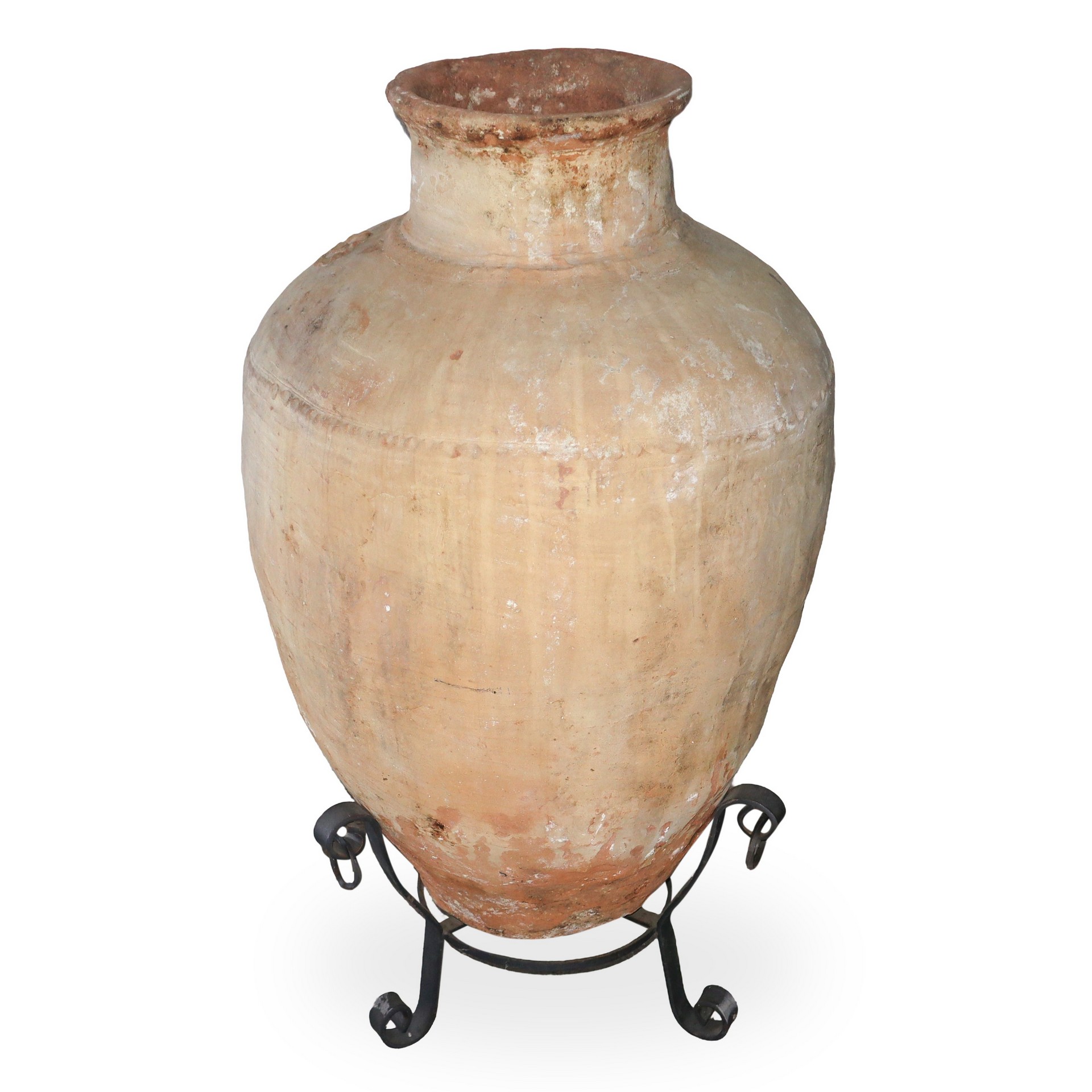 Giara in cotto con collo smaltato e base in ferro