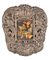 Scuola di Cuzco Arcangelo archibugiere olio su tavola cm 12x10,5 - in cornice cm 30x27 ampia cornice sagomata in lamina di rame sbalzato con conchiglie ai vertici e ampie volute a ricciolo tutt'intorno