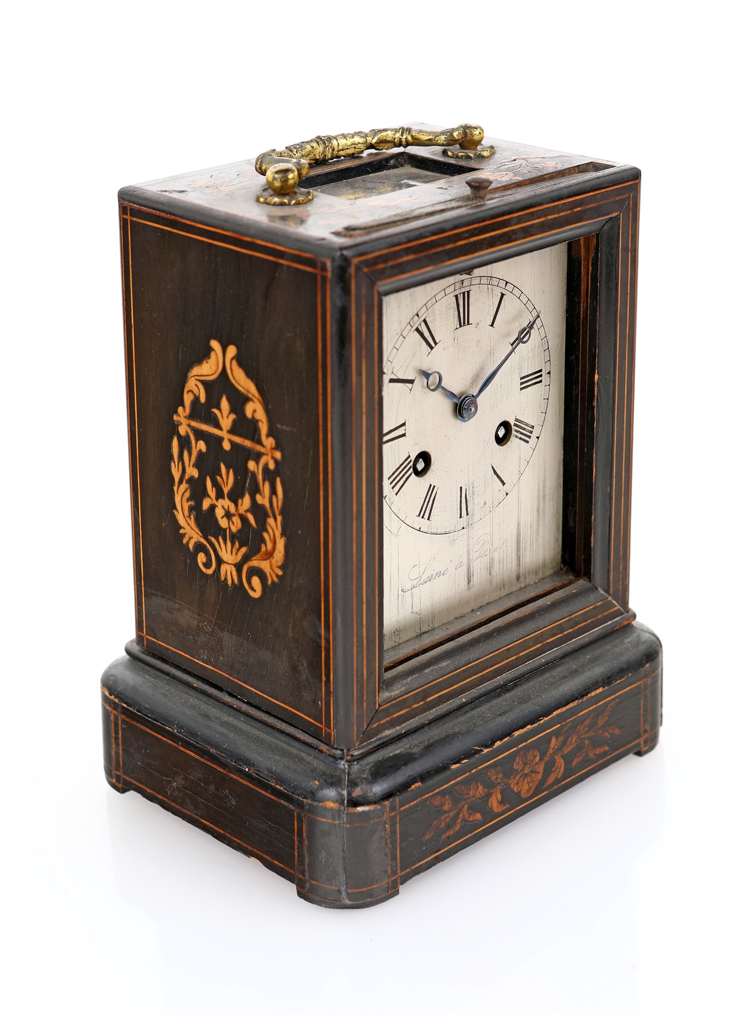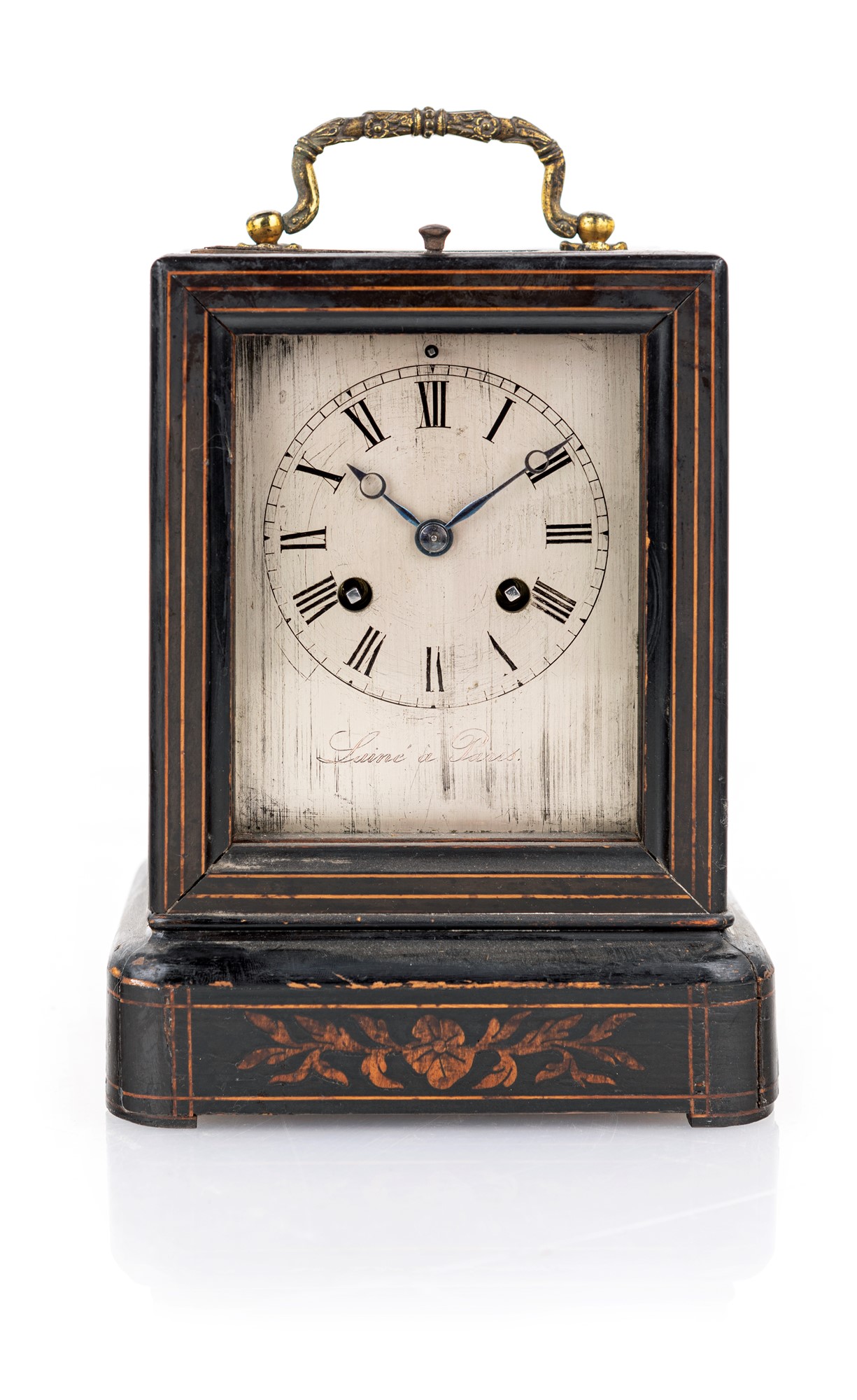 Pendola da viaggio in legno intarsiato, Lainé à Paris, 1830 cm 20x16x12 cassa...
