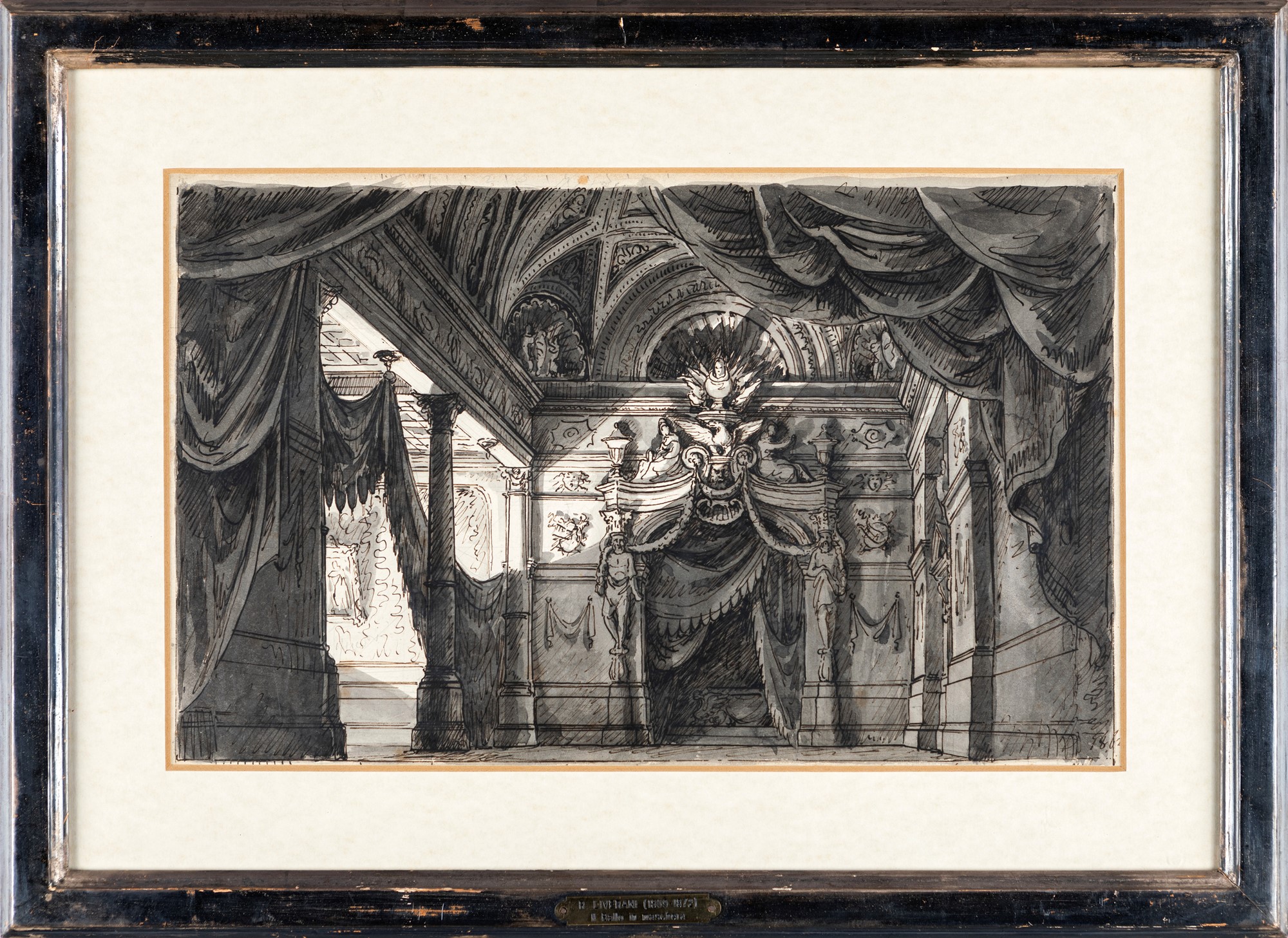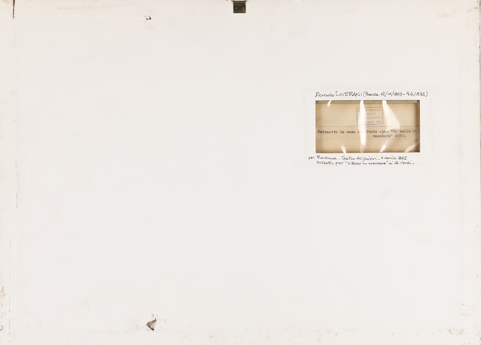 Bozzetto per "Il ballo in maschera" di Giuseppe Verci per il Teatro Alighieri di Ravenna 1862 China e acquarello su carta mm 250x400 - in cornice cm 40x55 Datato in basso a destra "1862". Al verso reca timbro della Galleria Carlo Virgilio, Roma