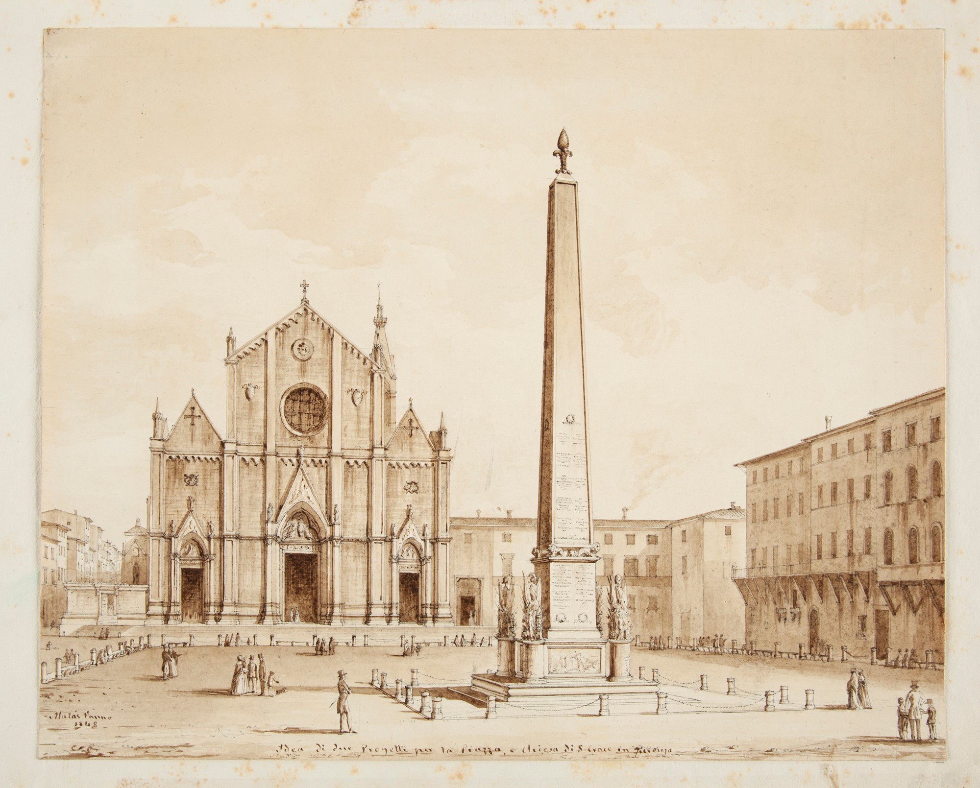 Idea di due progetti per la Piazza e chiesa di S. Croce in Fiorenza 1848 Acquerello e china su carta mm 244x300 - con passepartout cm 36x45