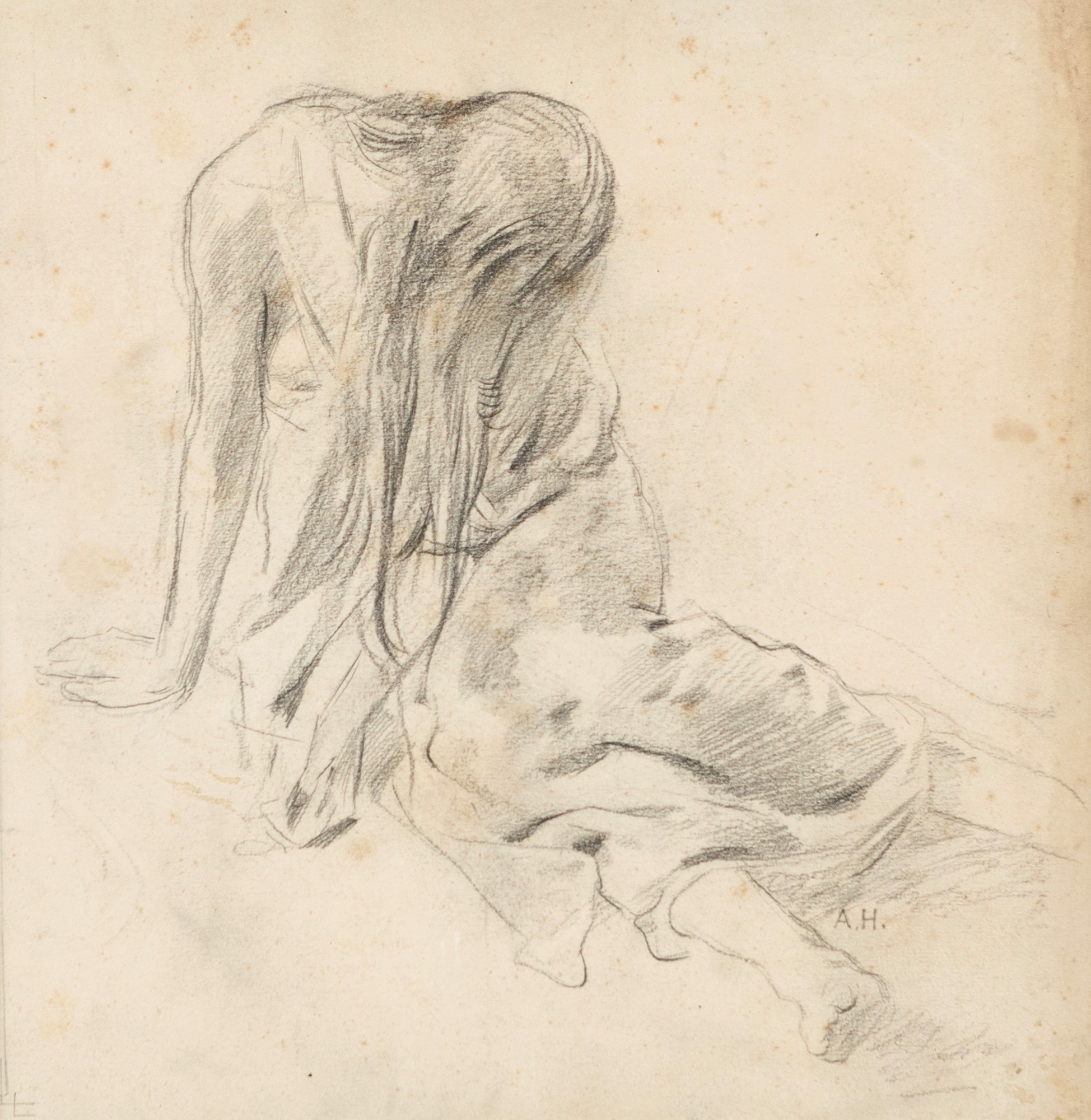 Adolf Hirémy-Hirschl (Ungheria 1860-Roma 1933) Donne distesa Matita su carta...
