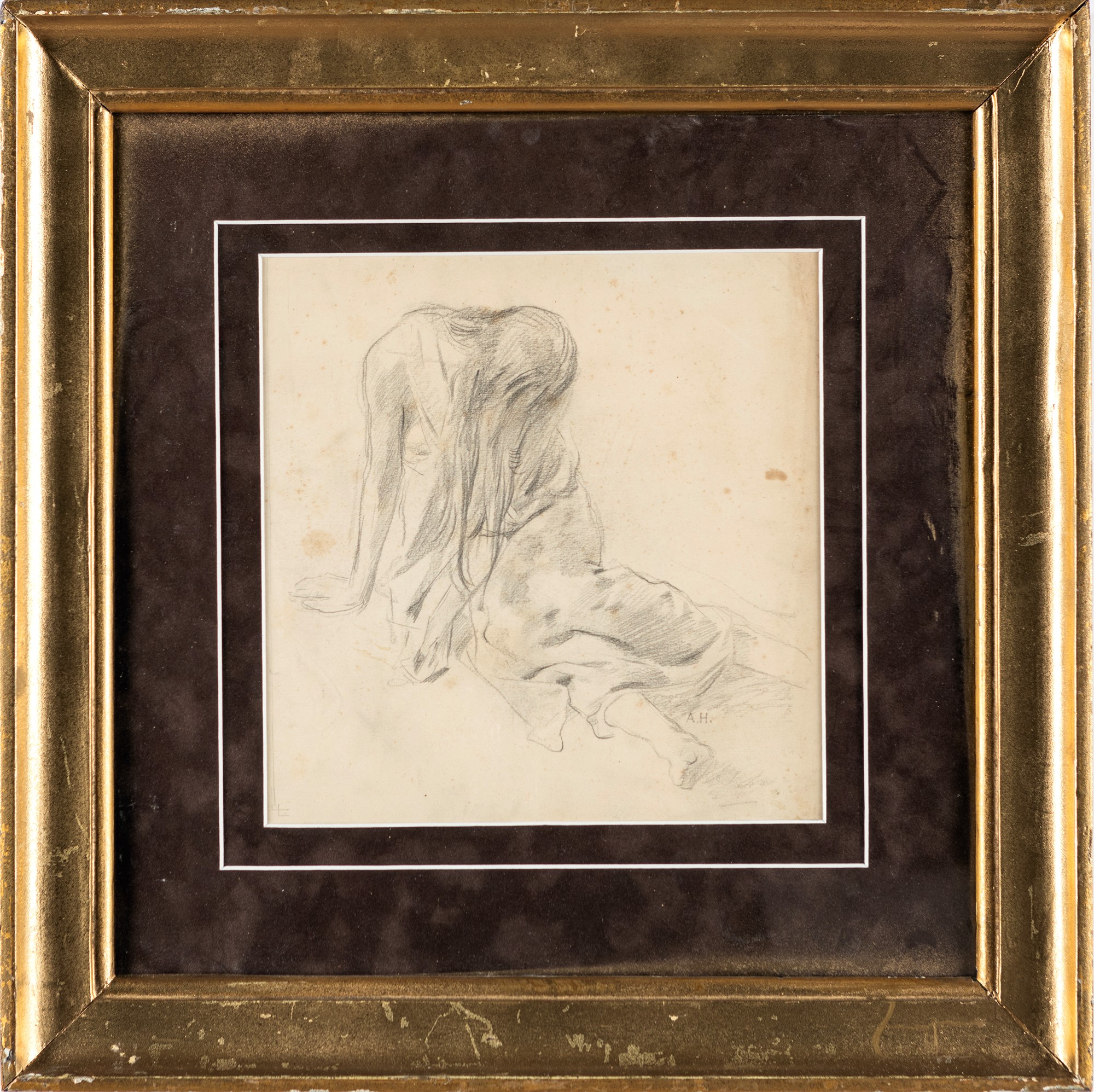 Donne distesa Matita su carta mm 265x265 - con cornice cm 50x50 Monogramma in basso a destra "A.H."