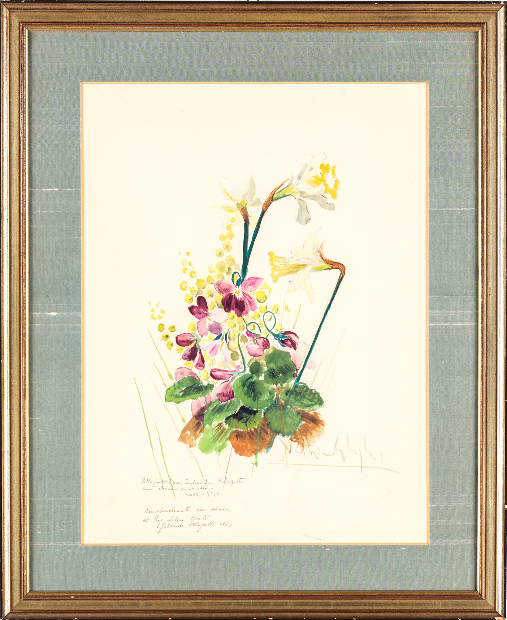 Paulo Ghiglia (Firenze 1905-Roma 1979) Bouquet di fiori aquerello su carta mm...