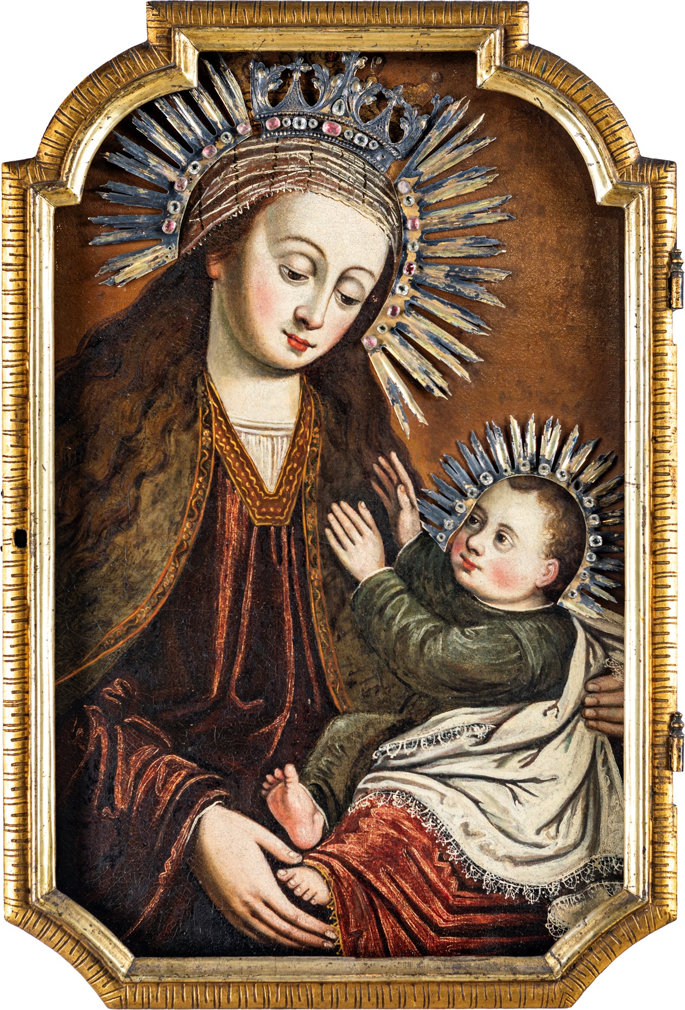 Scuola spagnola del XVIII secolo Scuola Spagnola, Madonna col Bambino olio su...