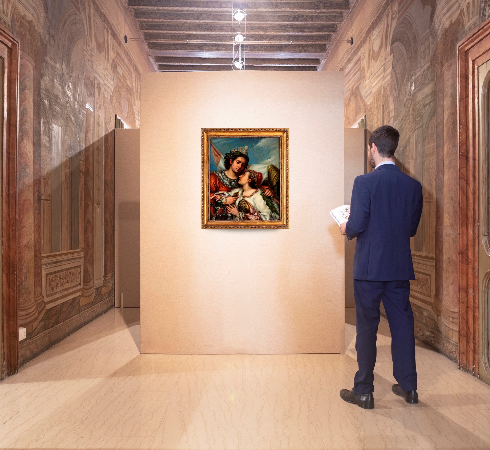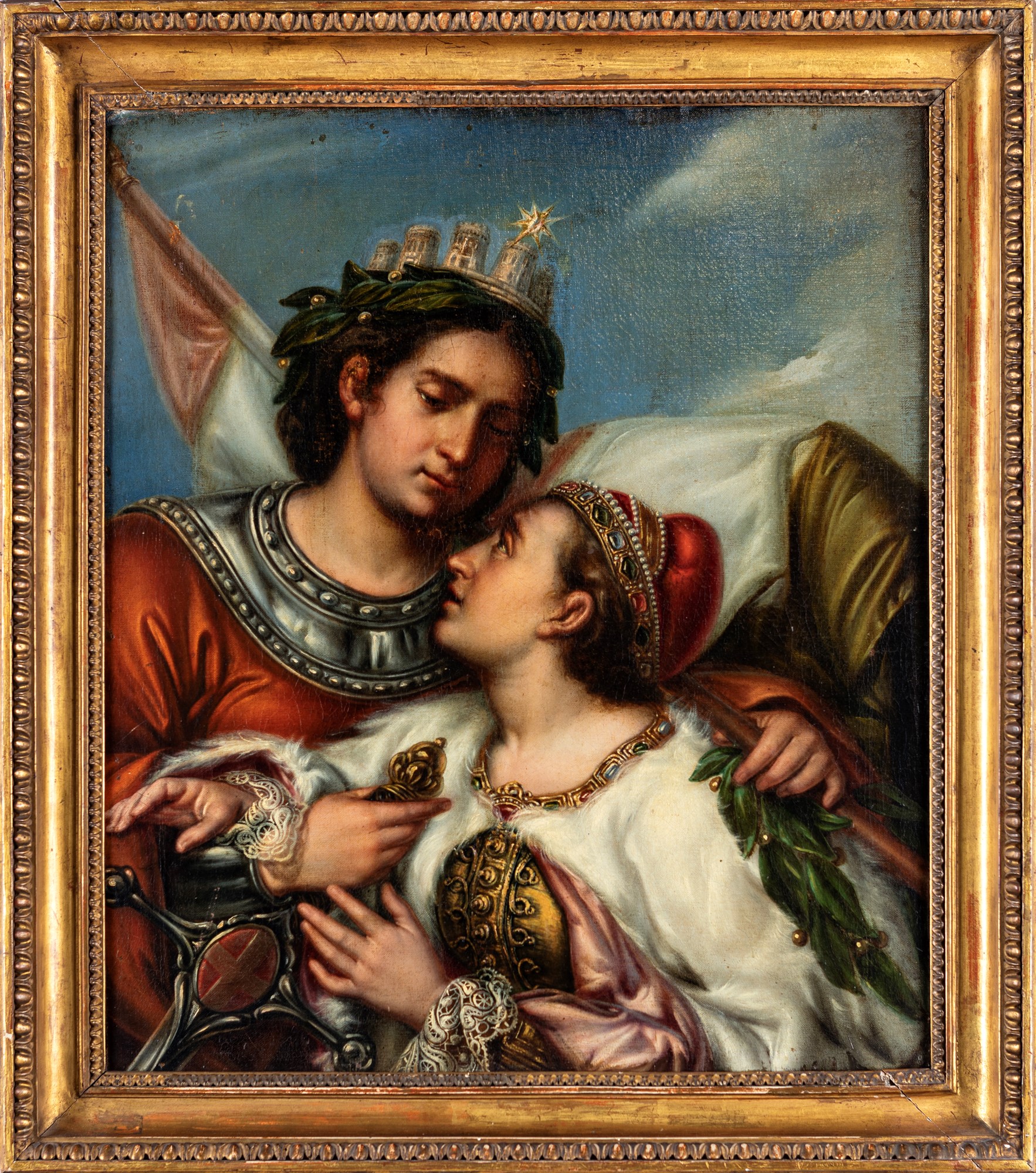 Lotto 283 | Scuola neoclassica italiana Venezia che abbraccia l'Italia olio su tela cm...