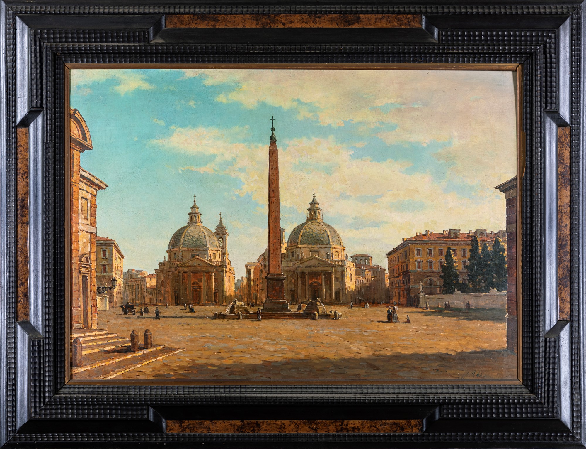 Veduta di Piazza del Popolo XX secolo olio su tela cm 70x100 - in cornice cm 100x130
