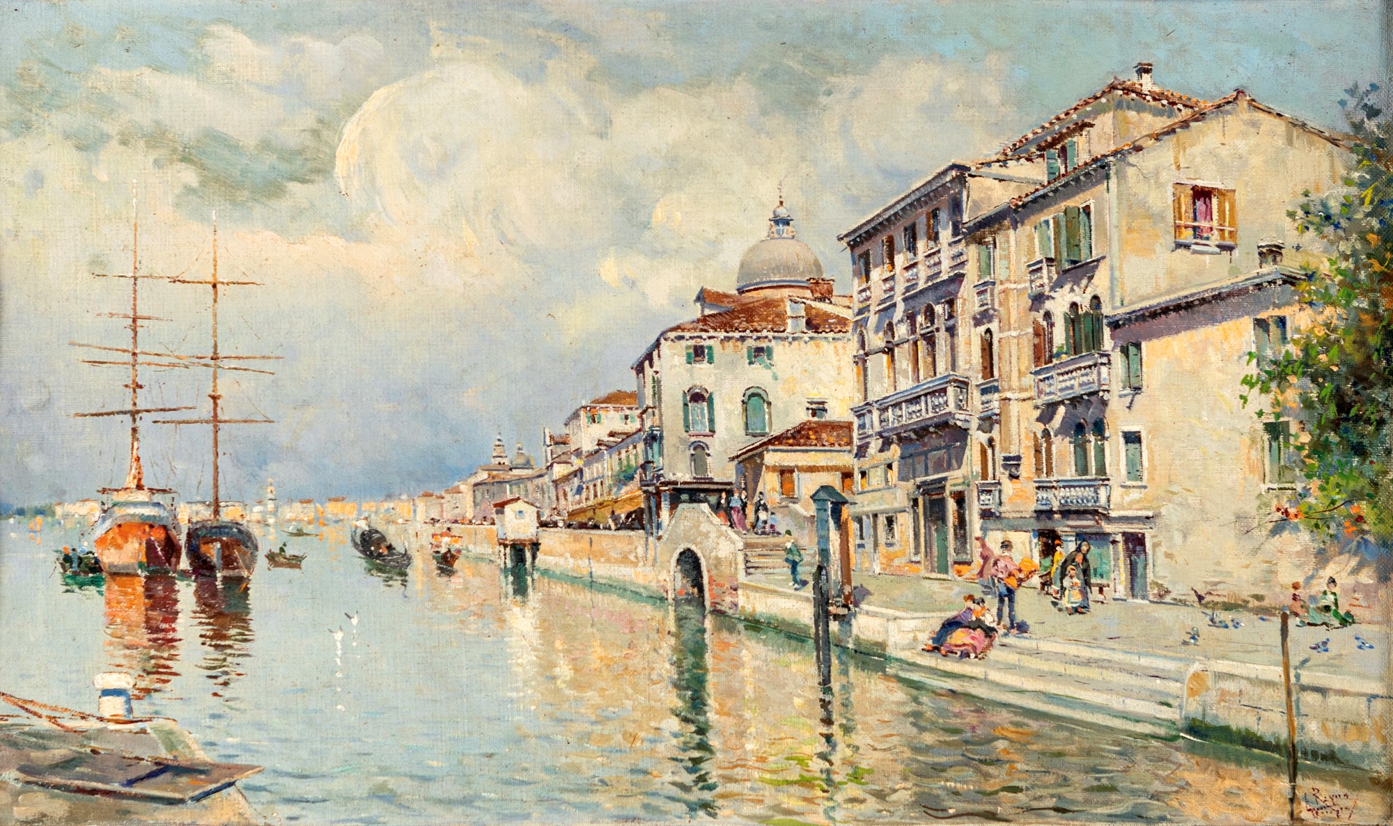 Antonio María Reyna Manescau (Coin 1859-Roma 1937) Canale a Venezia olio su...