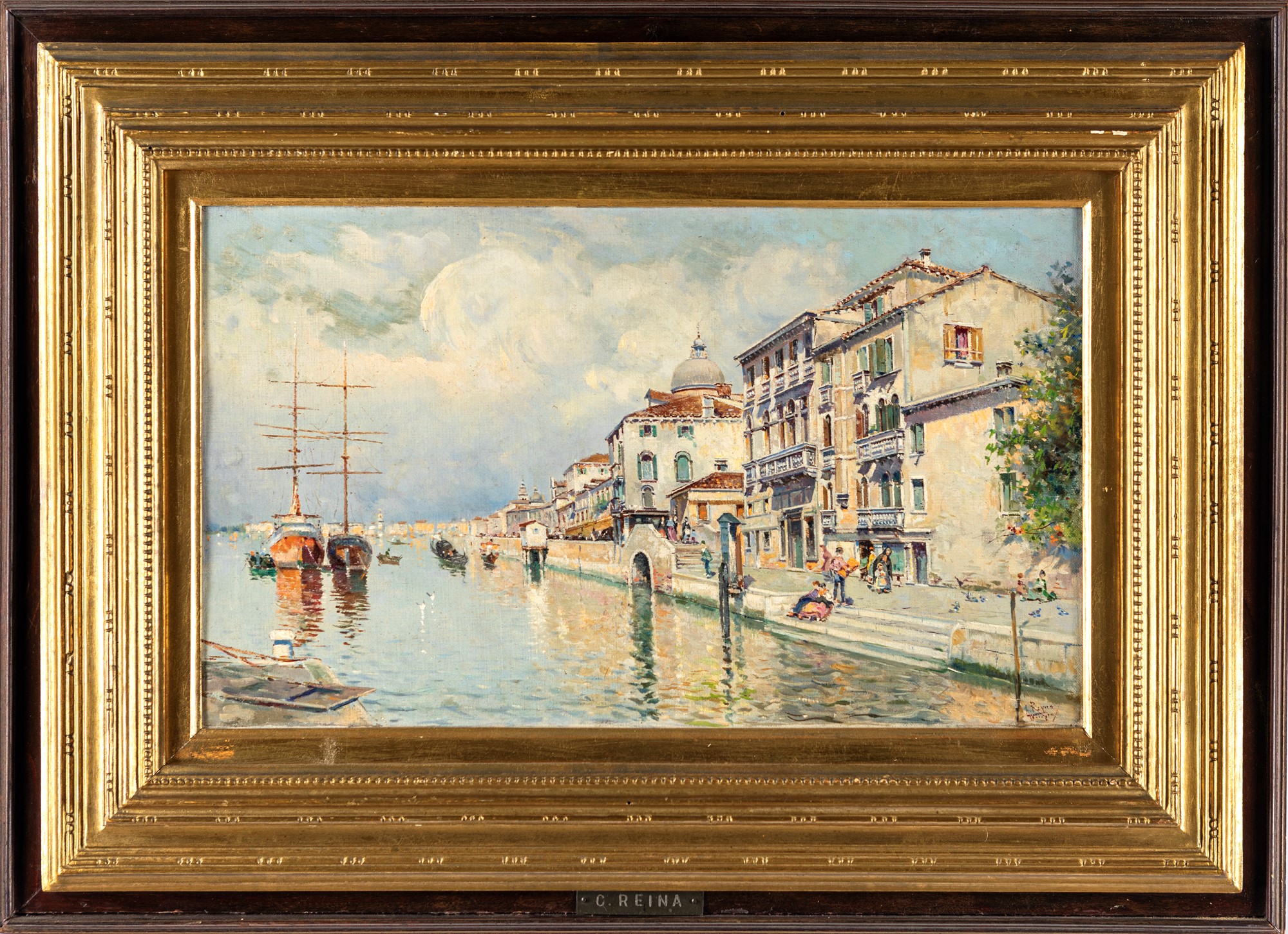 Canale a Venezia olio su cartone telato cm 30 x 50 - in cornice 53 x 73 Firmato in basso a destra "Reyna"