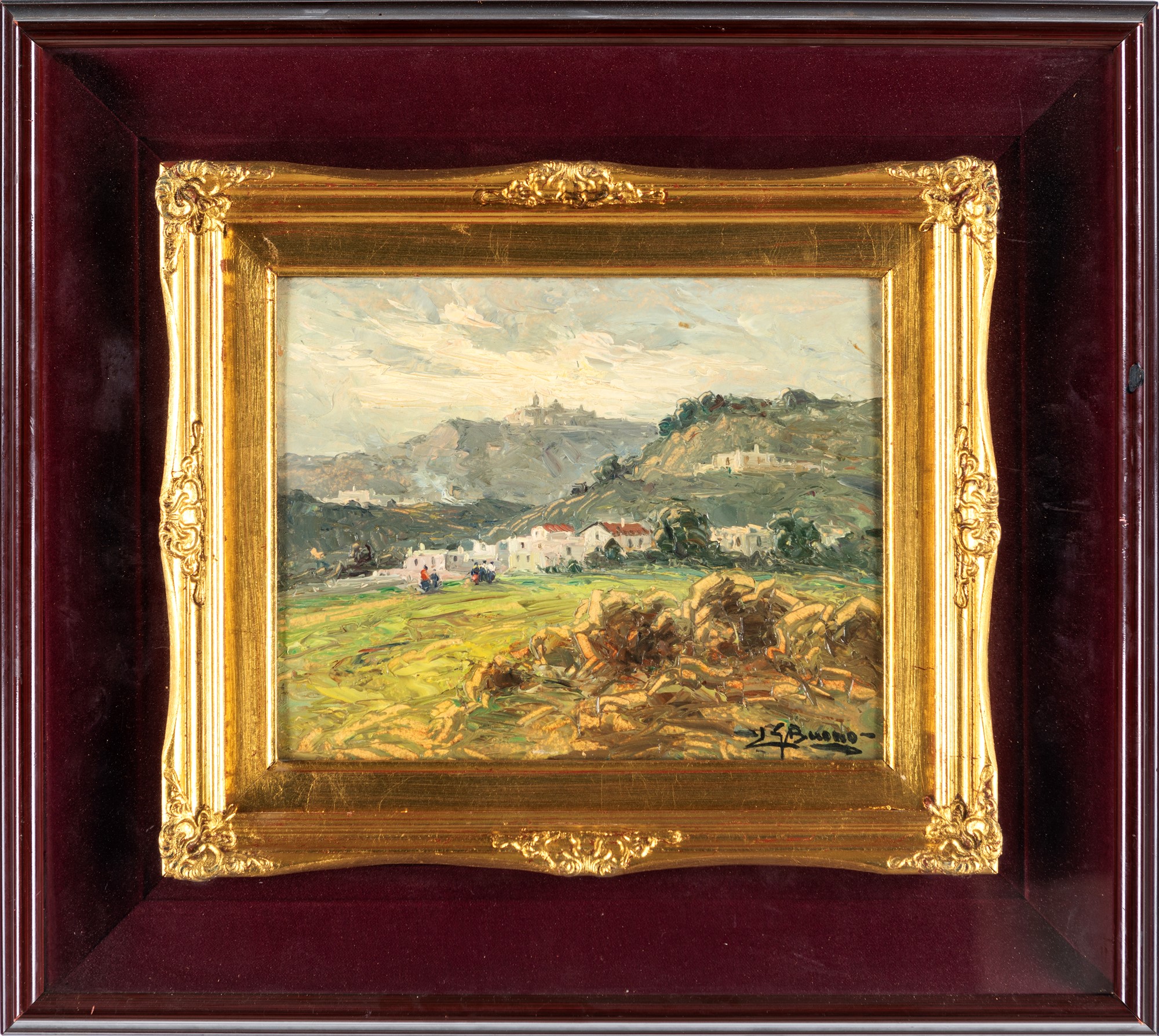 Piccolo paese (Pozzuoli) olio su cartone cm 30x24 - in cornice 50,5x56,5 Firmato in basso a destra "LG Buono"; titolato al verso