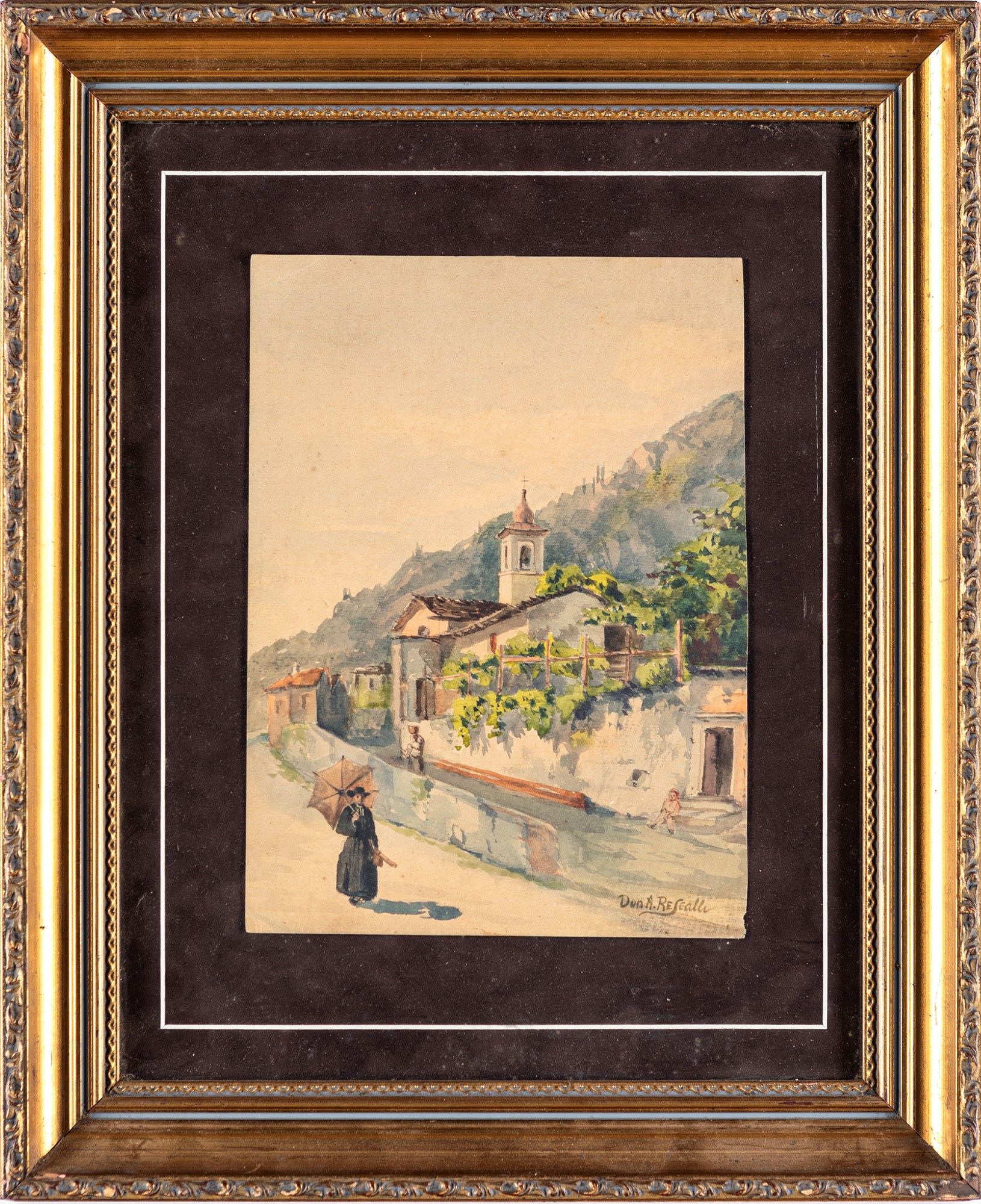 Il curato di campagna acquerello su carta cm 28,5 x 21 - in cornice 50 x 41 Firmato in basso a destra "Don A. Rescalli"