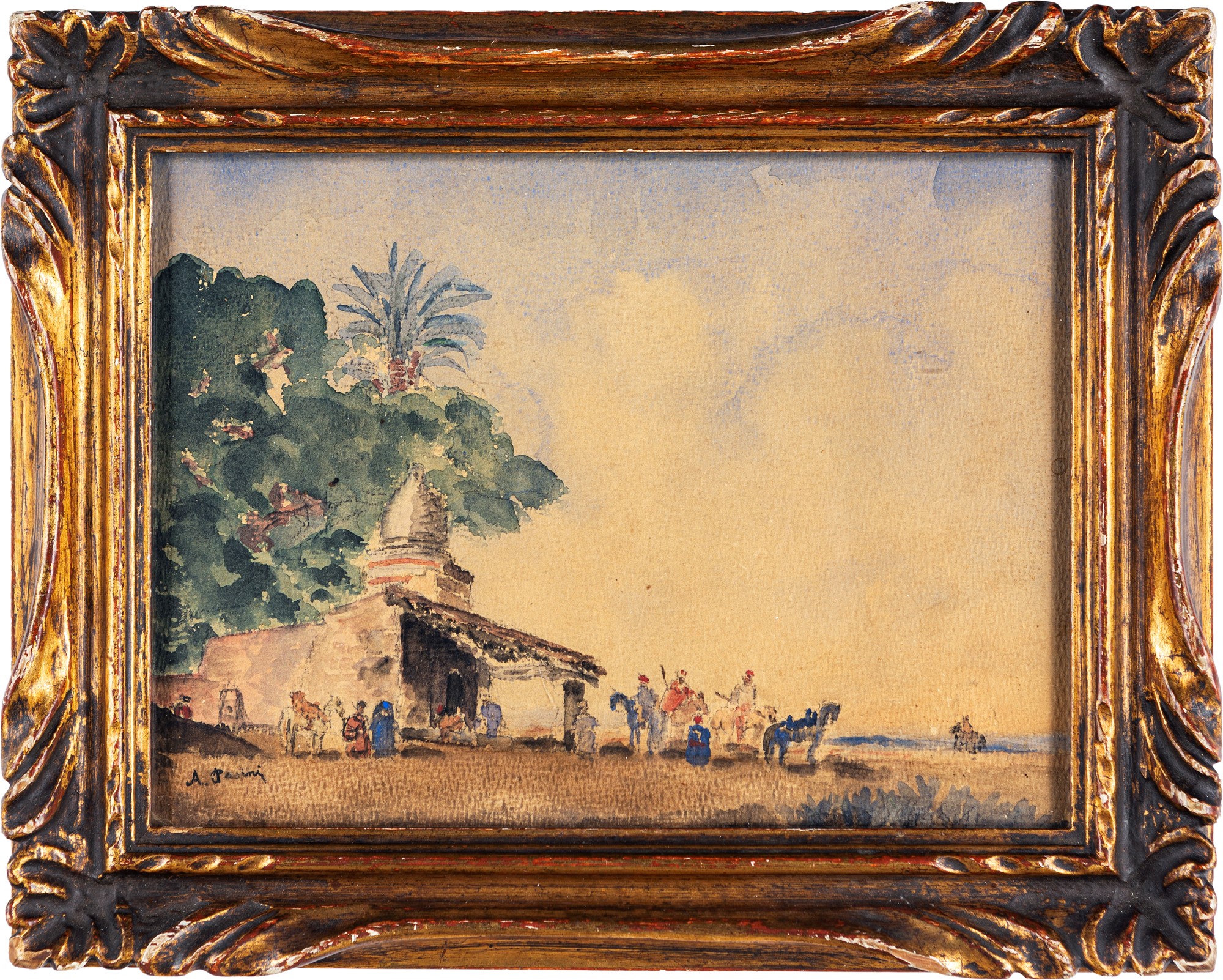 Veduta orientale acquerello su cartoncino cm 18.3x24.5 - in cornice cm 24,5x30,5 Firmato in basso a sinistra "A. Pasini"
