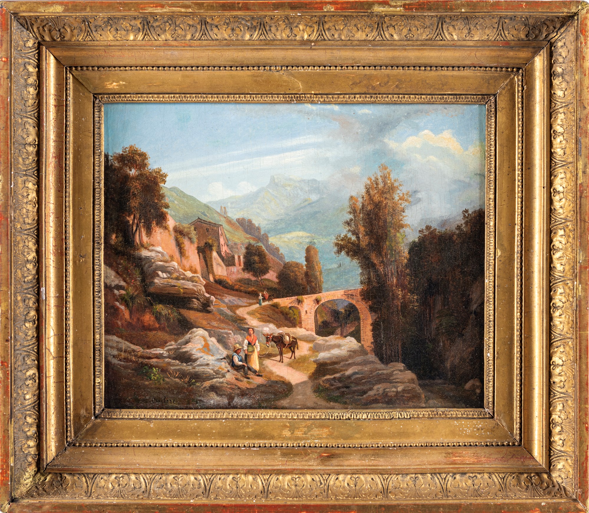 Teodoro Duclère (Napoli 1816-Napoli 1867) Ponticello a Cava dei Tirreni olio...