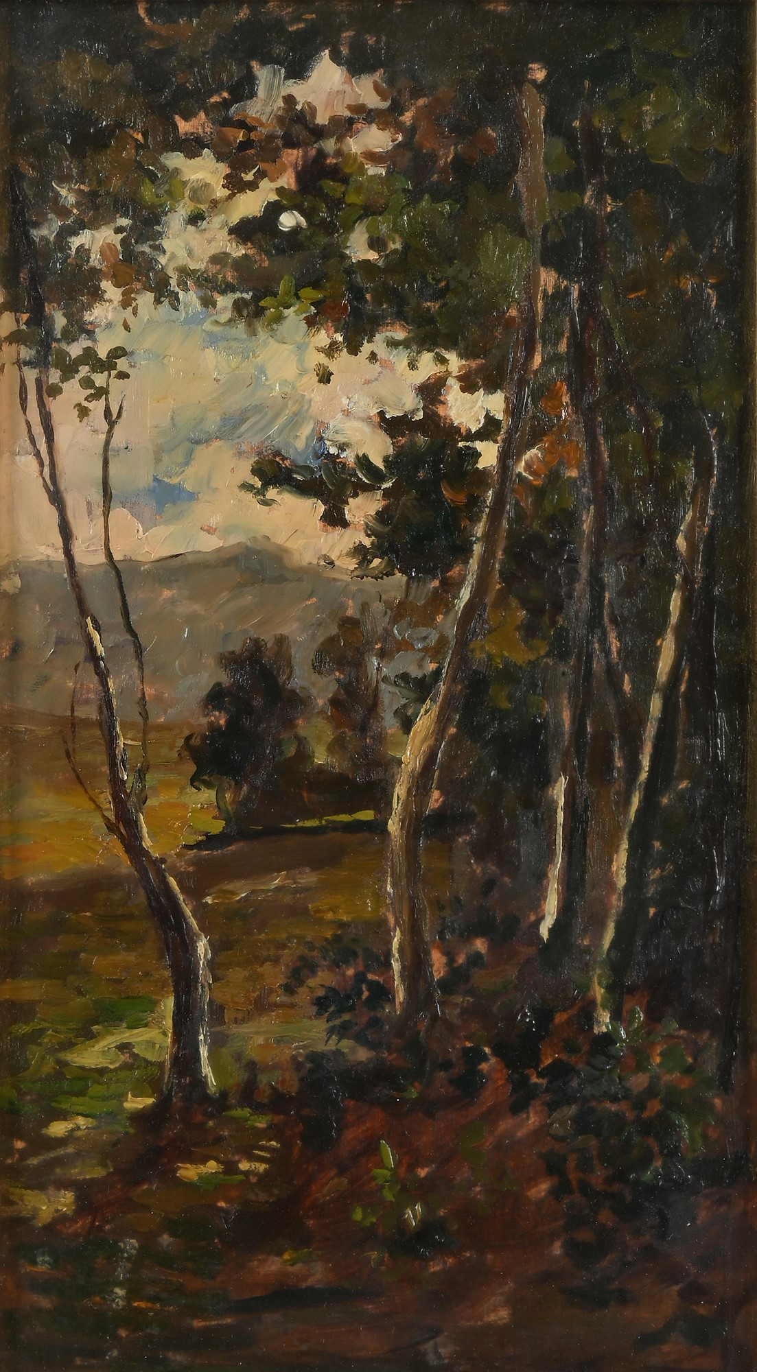 Bosco olio su tavola cm 32x18 - in cornice cm 48x34 L'opera priva di firma è stata attribuita su base stilistica.