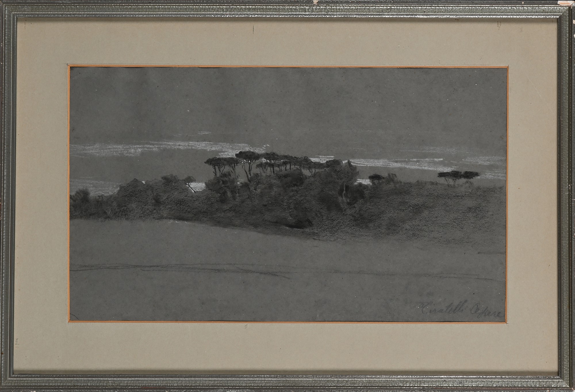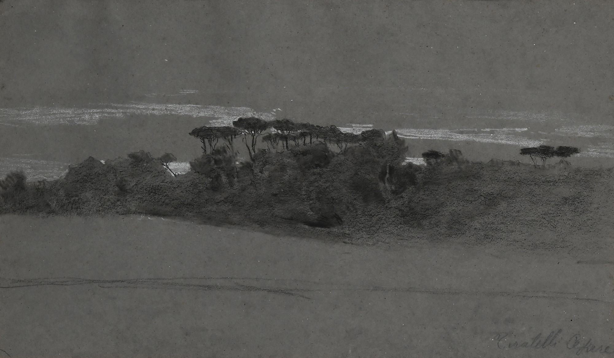 Cesare Tiratelli (1864-1933) Paesaggio con pineta carboncino e matita su...