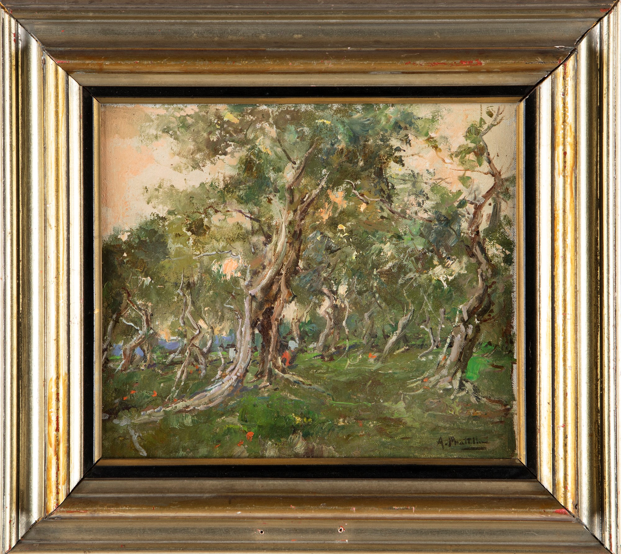 Uliveto olio su tavola cm 23x27 - in cornice cm 32x35 Firma in basso a destra "A. Pratella"