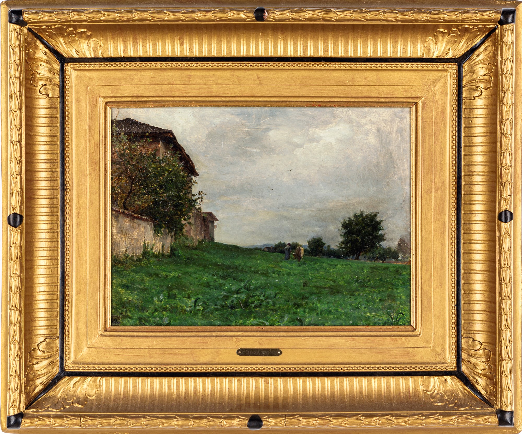 Campagna chivassese - Studio in Ottobre 1880 olio su cartone cm 32x40 - in cornice cm 58x68 Datato al verso "1880"; al verso etichetta di esposizione con titolo