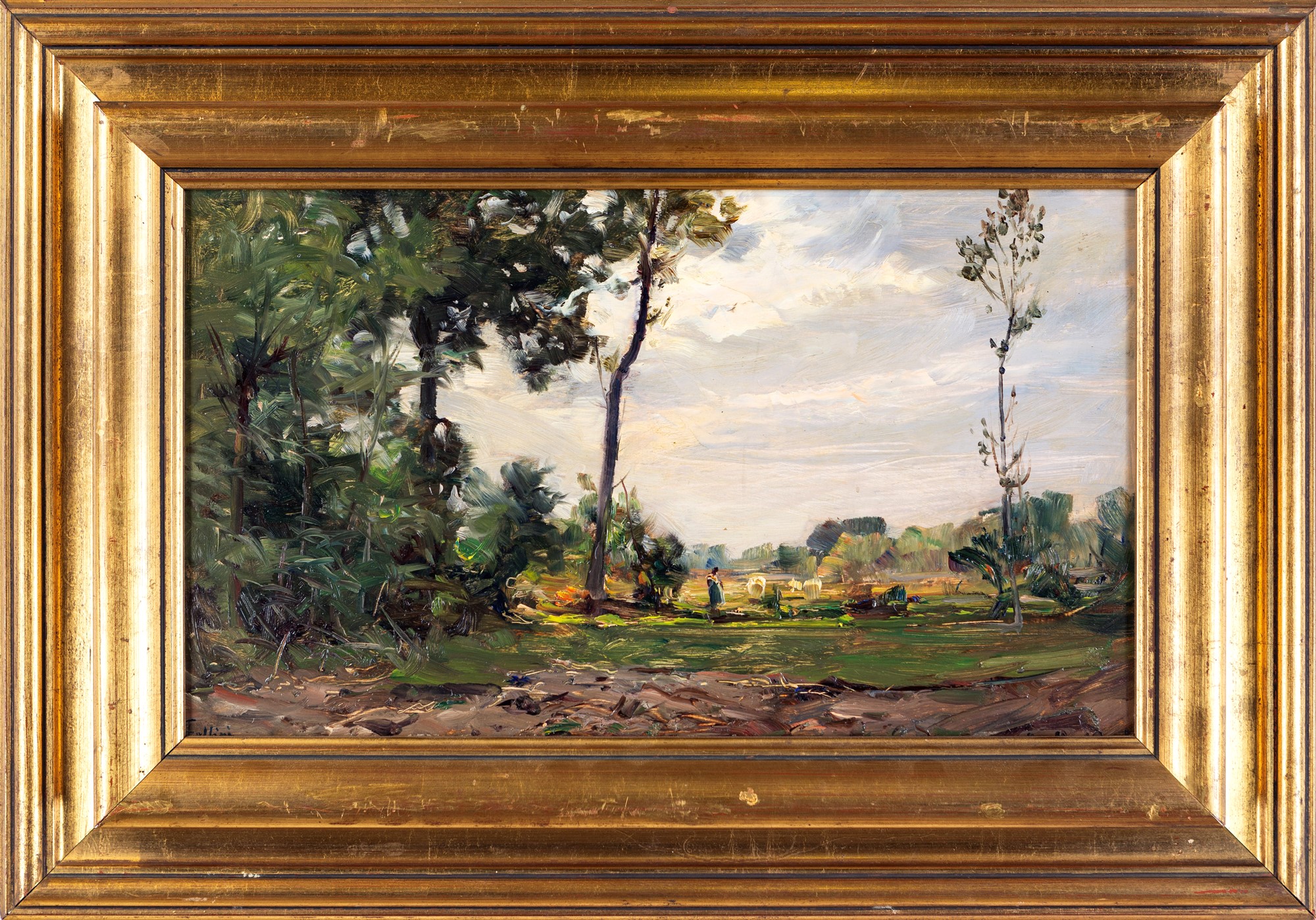 Carlo Follini (Domodossola 1848-Pegli 1938) Paesaggio olio su tavola cm 26x43...