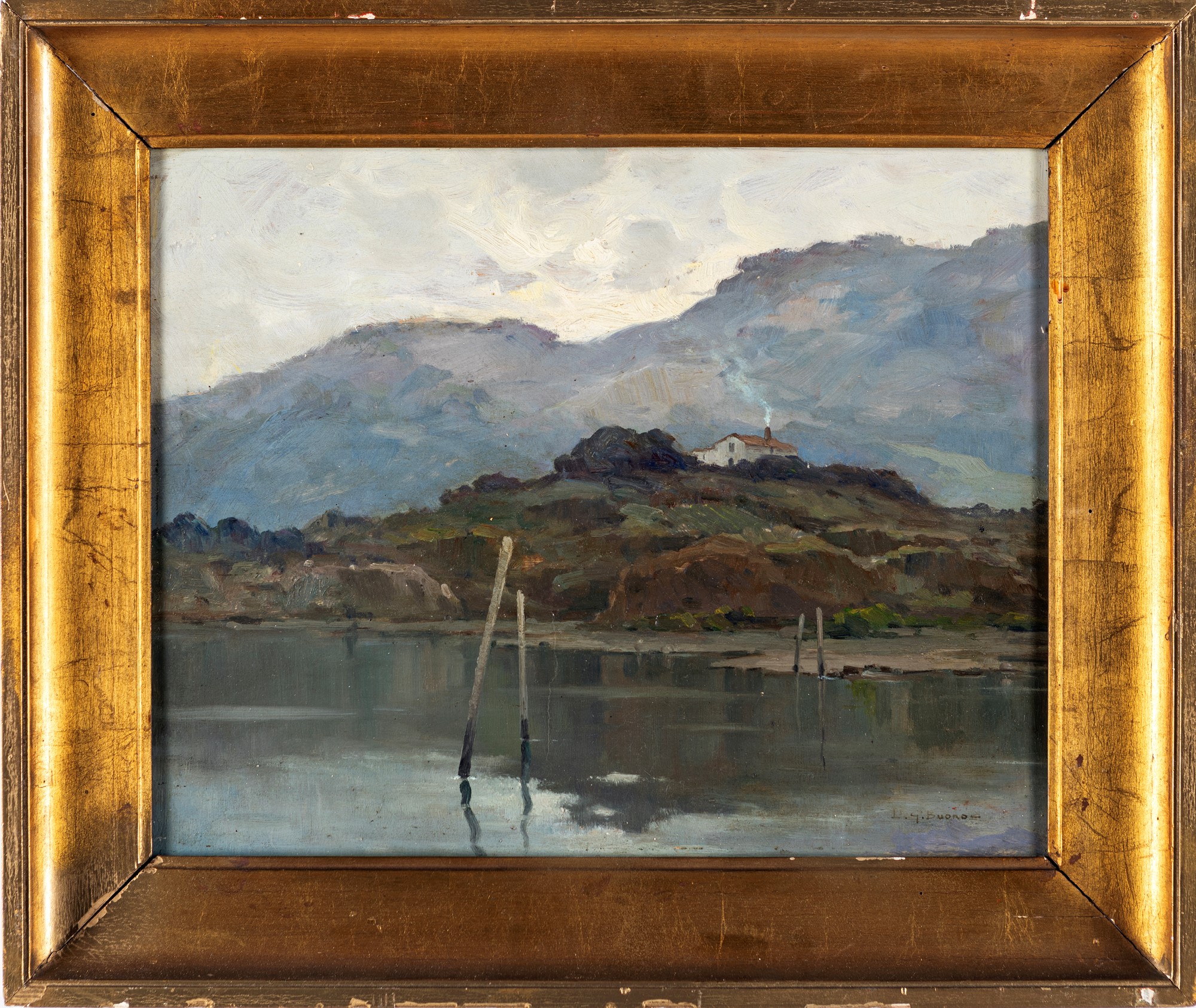 Leon Giuseppe Buono (Pozzuoli 1888-Pozzuoli 1976) Lago di Lucrino olio su...