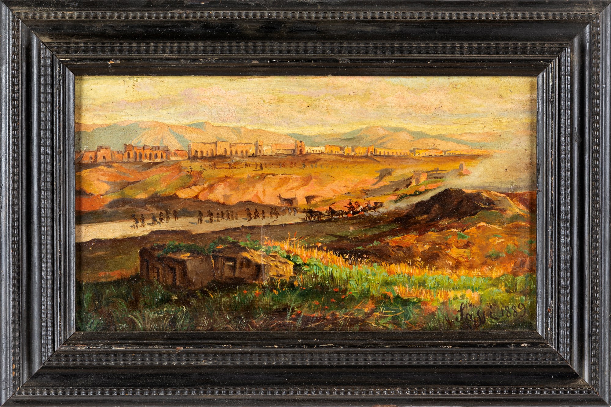 Ritorno da Capanelle 1889 olio su tavola cm 18x32 - in cornice cm 28x41 Firmato e datato in basso a destra "Sassi 1889"