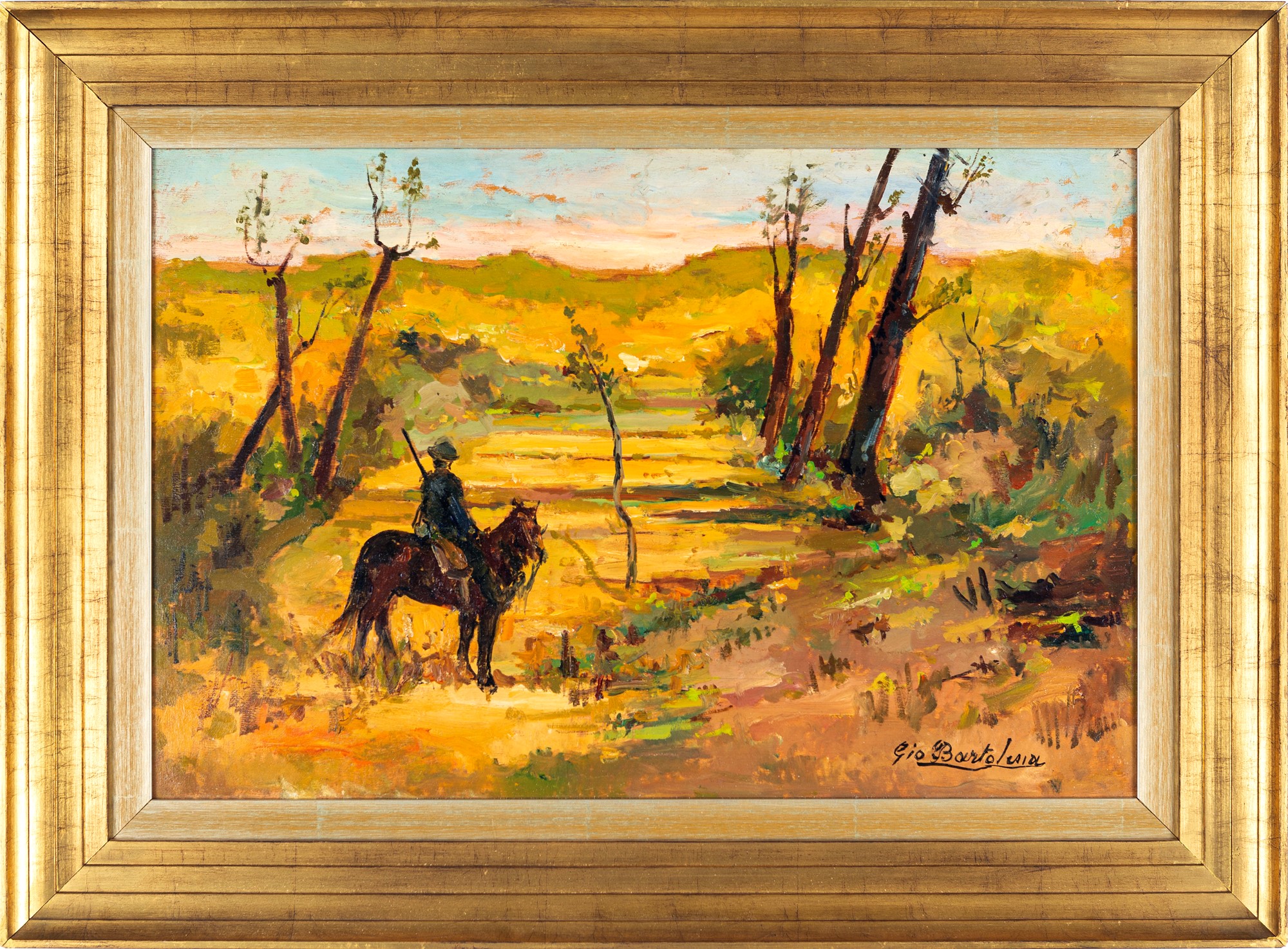 Cacciatore nella campagna livornese olio su tavola cm 40x60 - in cornice cm 56x76 Firmato in basso a destra "Gio Bartonlena". Dipinto iscritto presso l'Istituto Matteucci con il n. 82756.