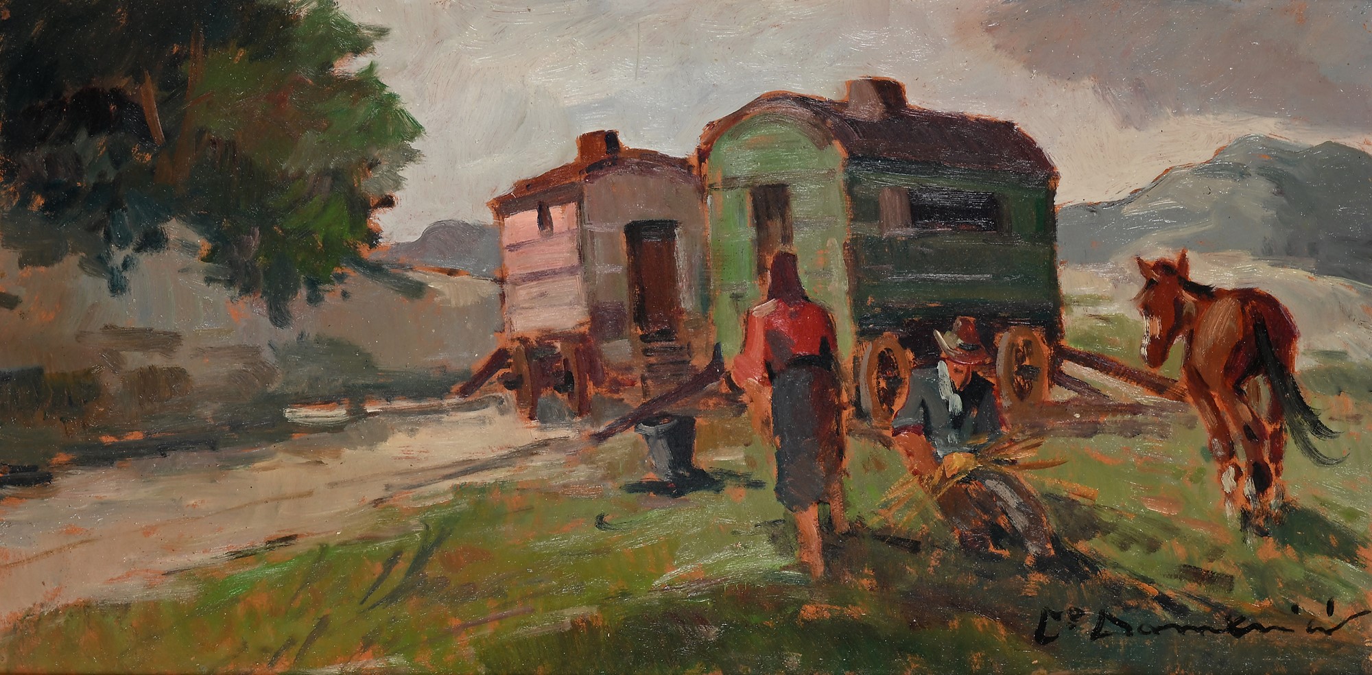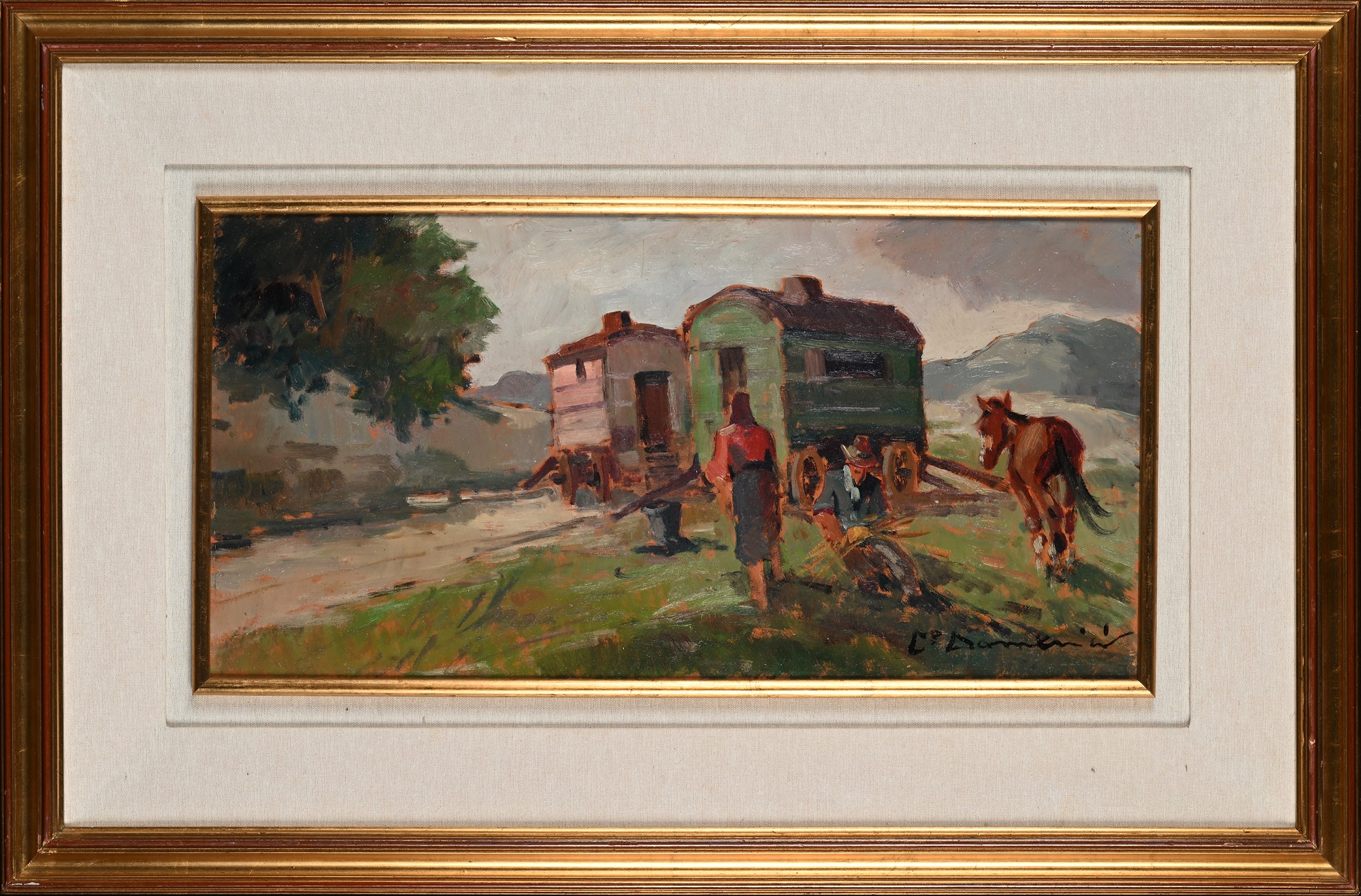 Carlo Domenici (Livorno 1897-Portoferraio 1981) La sosta dei girovaghi olio...