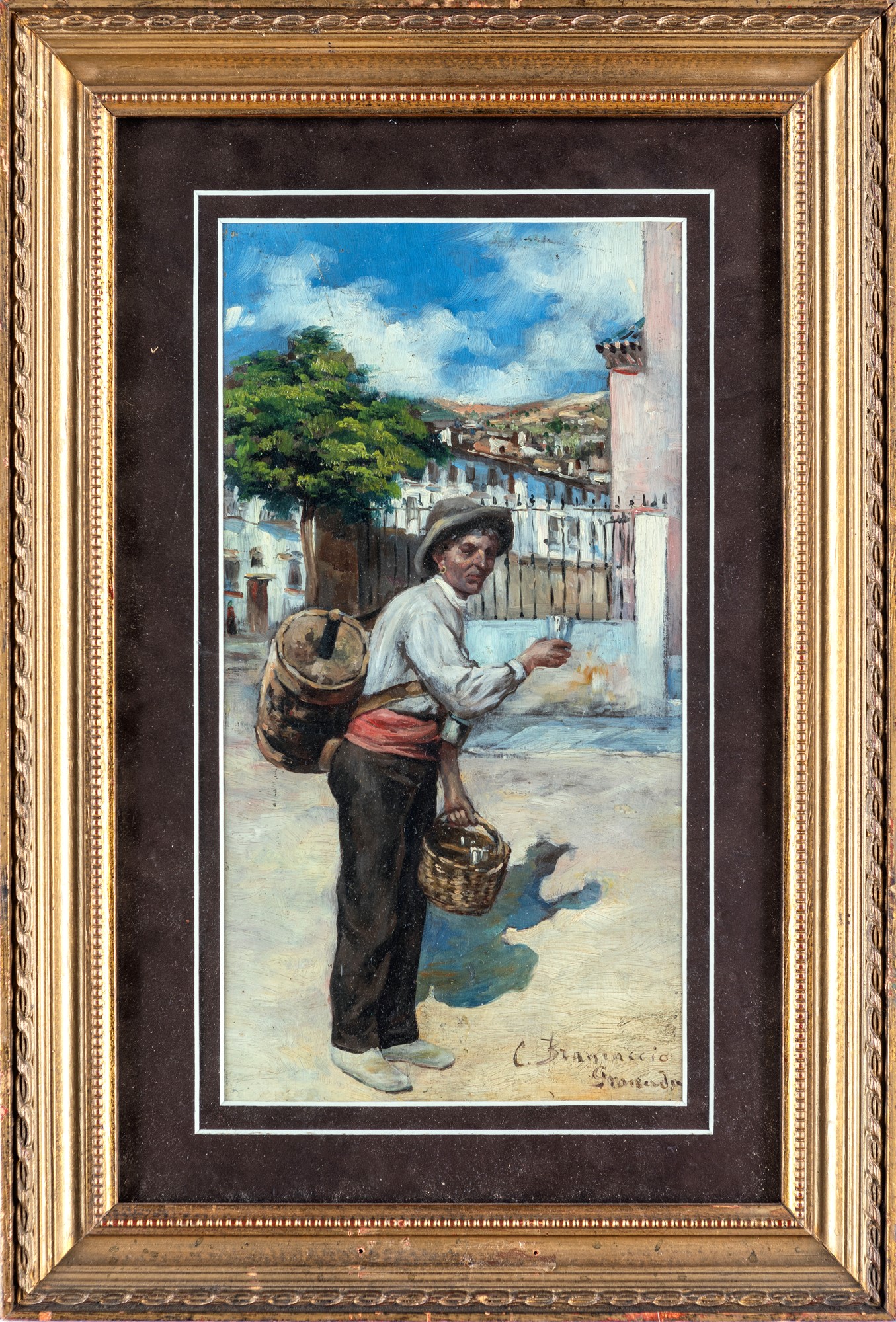 Vinaio olio su tavola cm 37,5x20 - in cornice 53,5x37 Firmato in basso a destra "C. Brancaccio Granada"